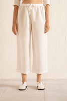 STRAIGHT LEG TROUSERS WITH ELASTICATED WAIST AND DRWASTRING IN HANDWOVEN COTTON