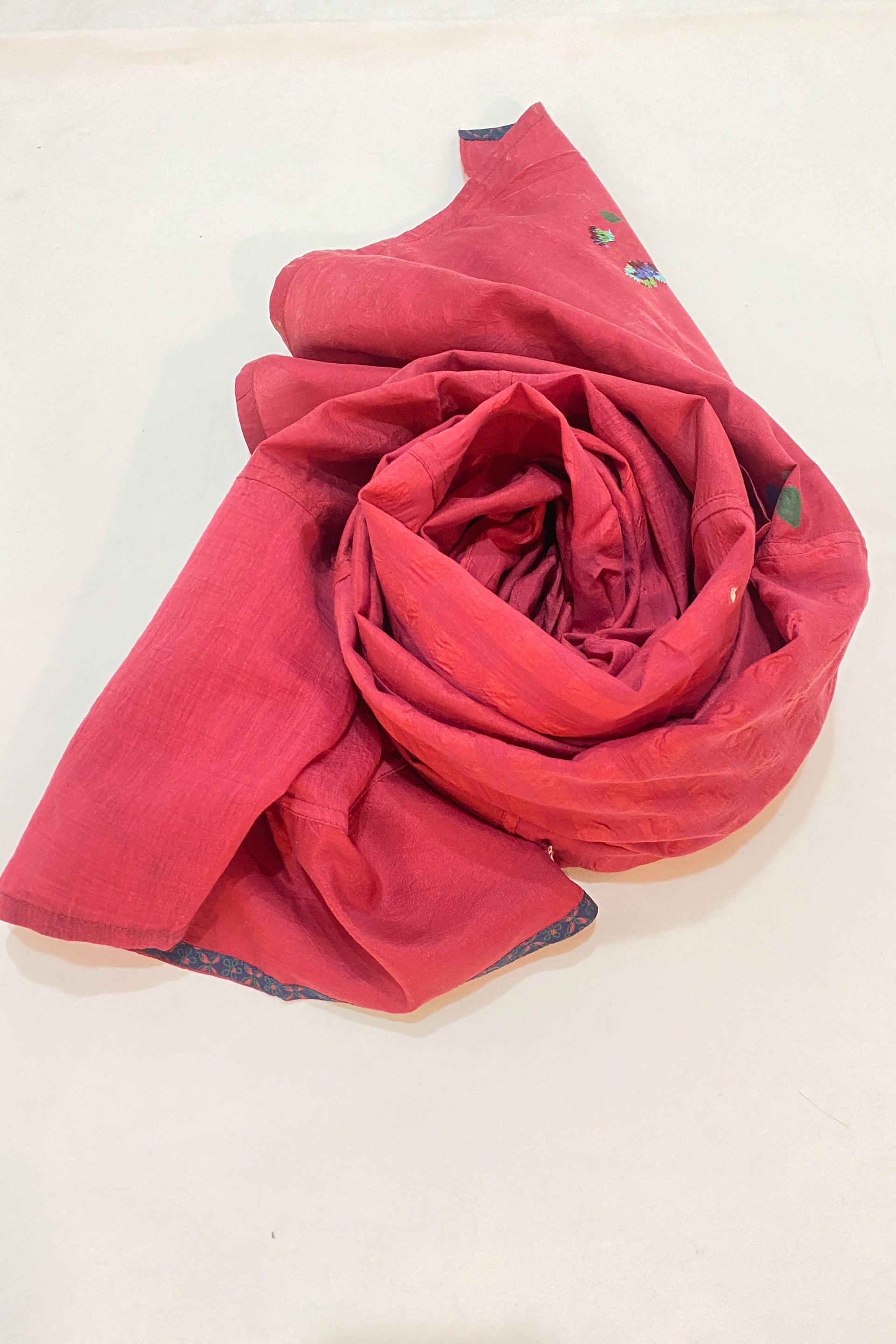 Burgundy cotton silk dupatta with block print and contrast selvedge detail
