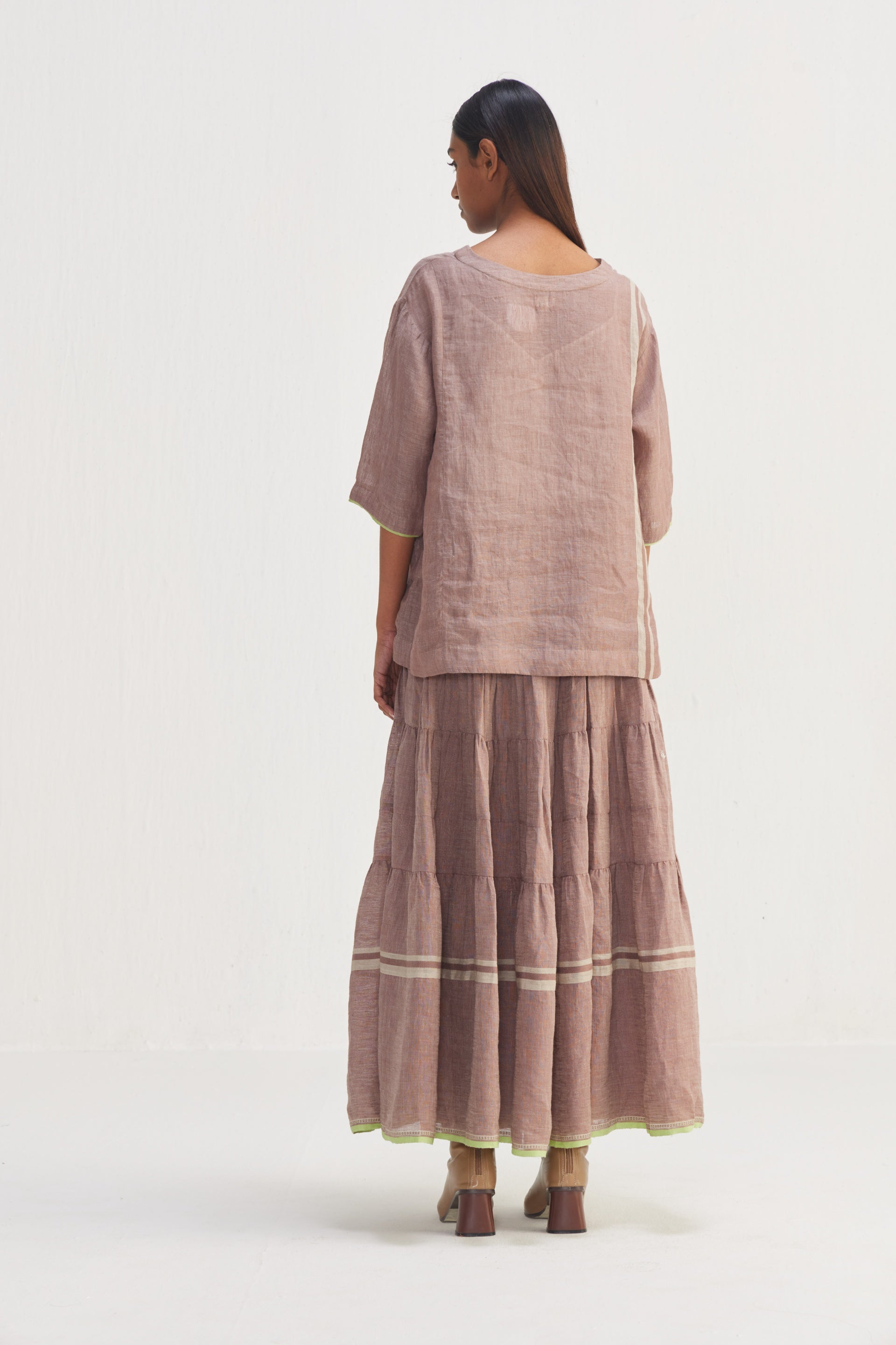 Blend of simplicity and elegance, featuring exquisite contrast border detailing that adds a refined touch to its minimalist design. The relaxed fit ensures ease of movement, making it perfect for everyday wear or special occasions. The borders, made from a complementary fabric, provide a bold contrast that draws attention to the intricate design elements.