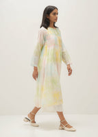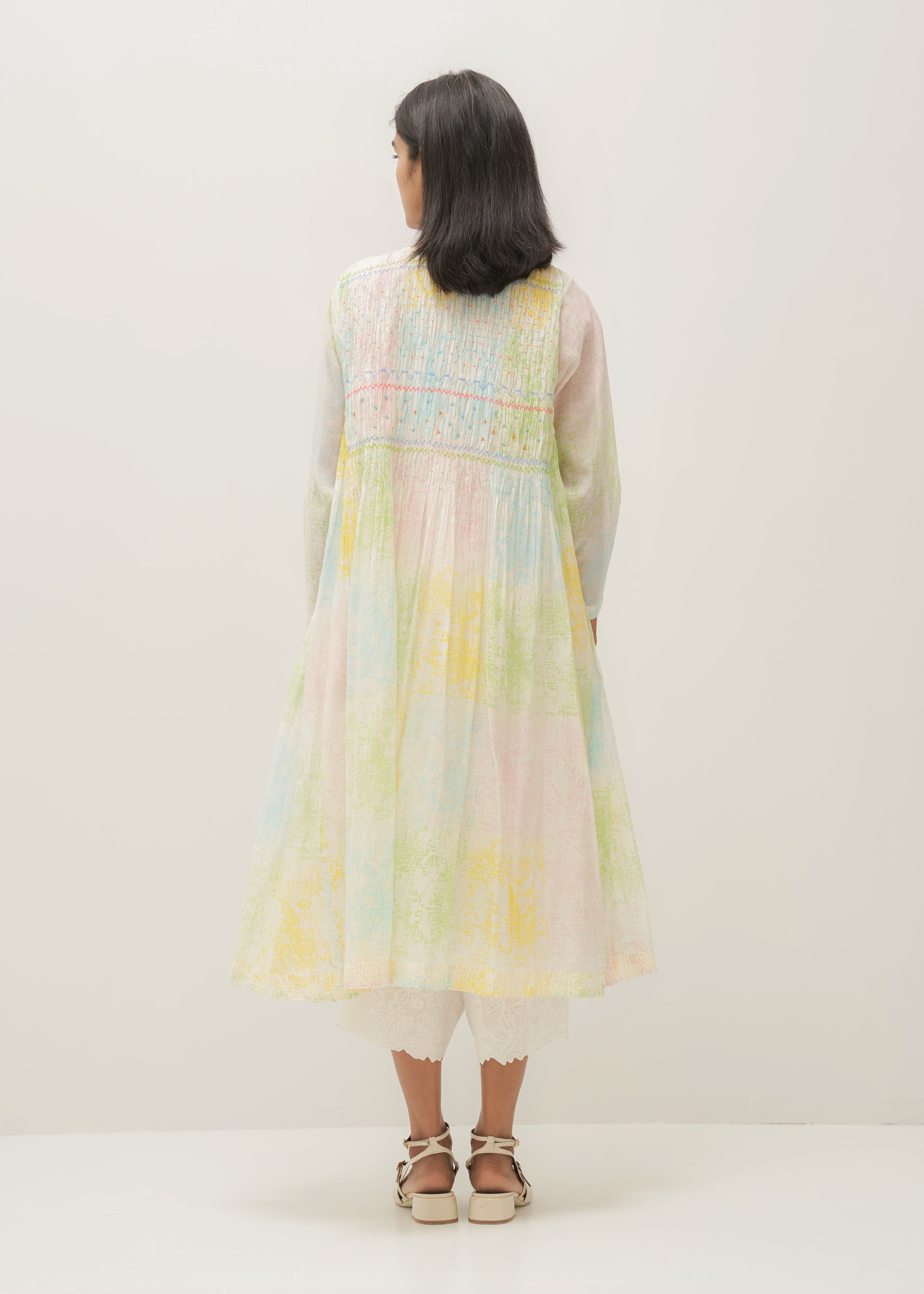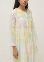 Multicolor dress with multicolor hand smocking and printed selvedge detail. Comes with an attached printed cotton silk lining