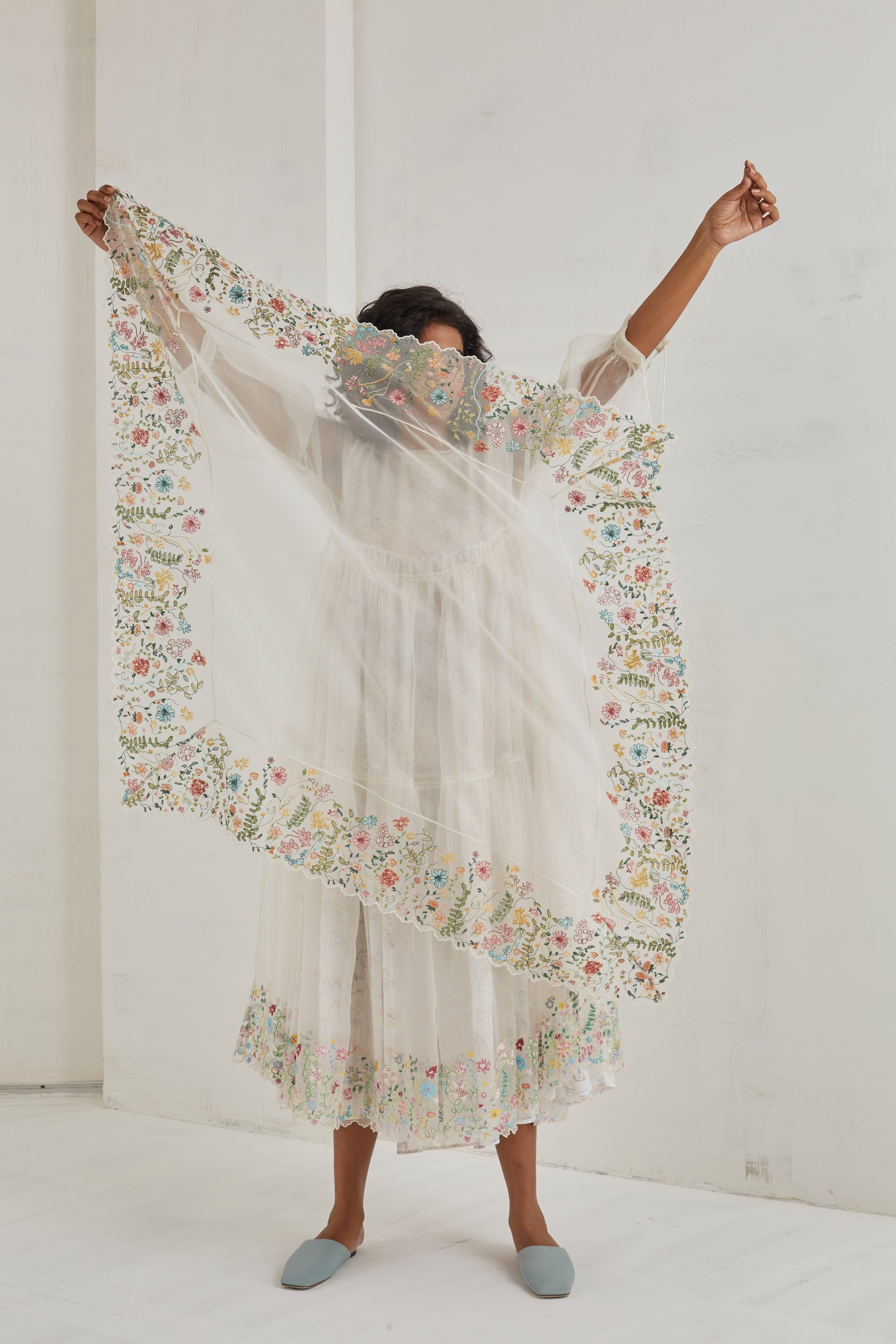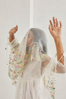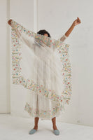 SILK ORGANZA STOLE WITH EMBROIDERED FLORALS