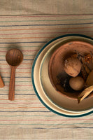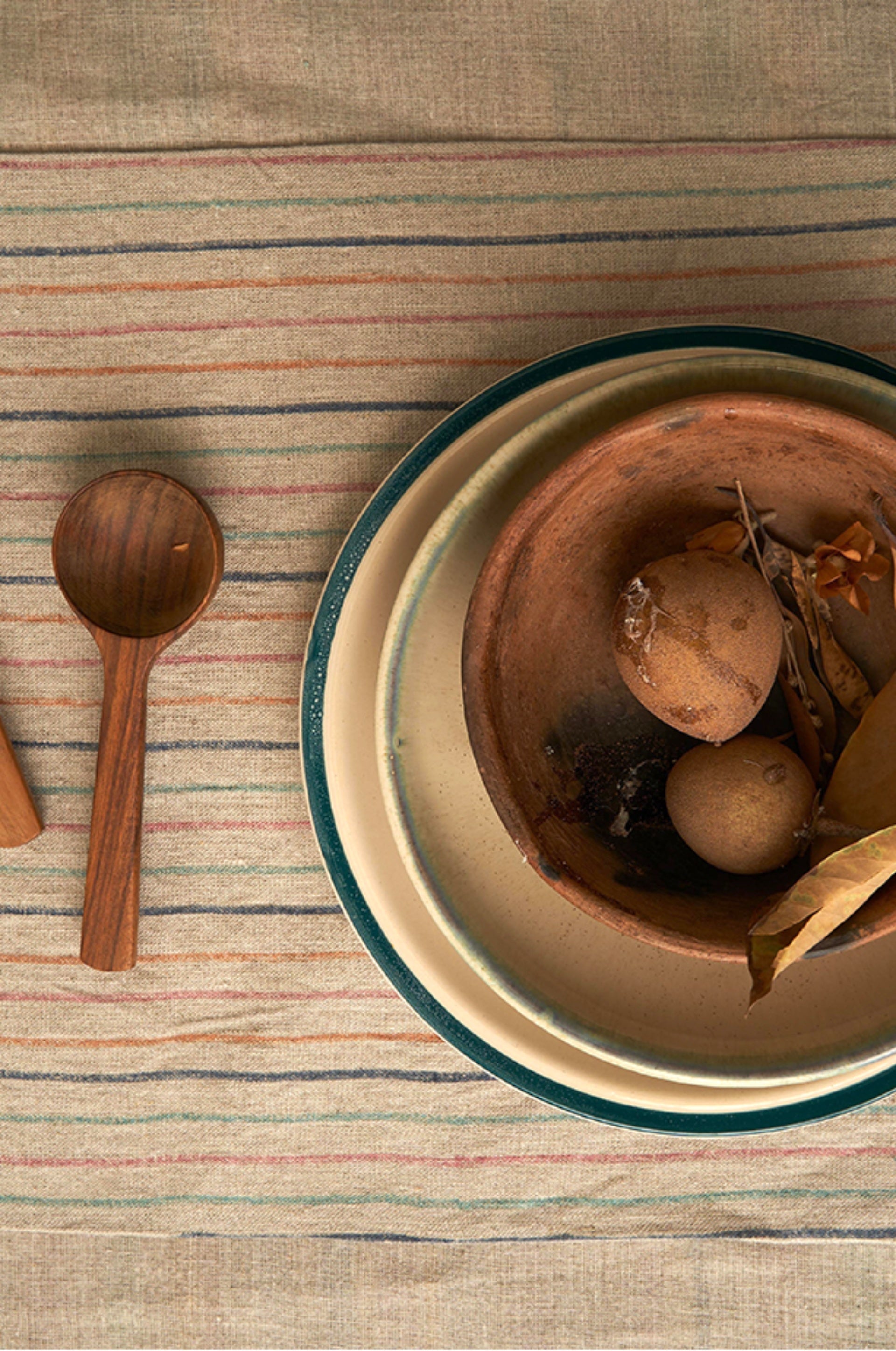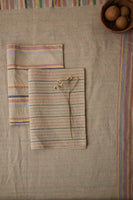 Natural reversible table mat set in 100% linen with multicolor block printed stripes and delicate embroidery detail