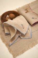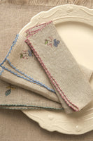 Natural table napkin set in 100% linen with multicolored hand block printed florals and delicate scallop border detail