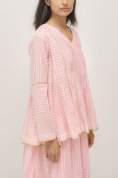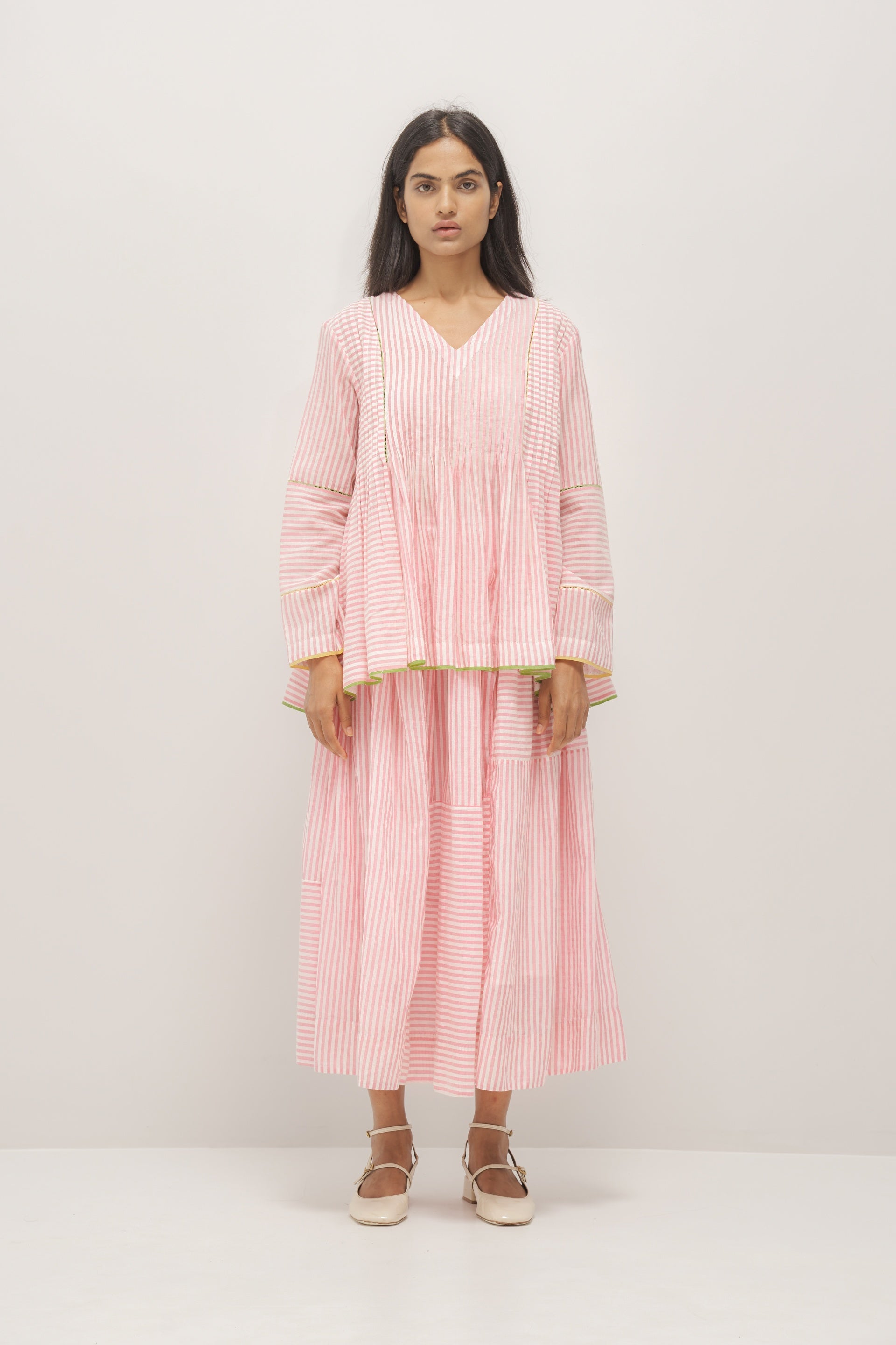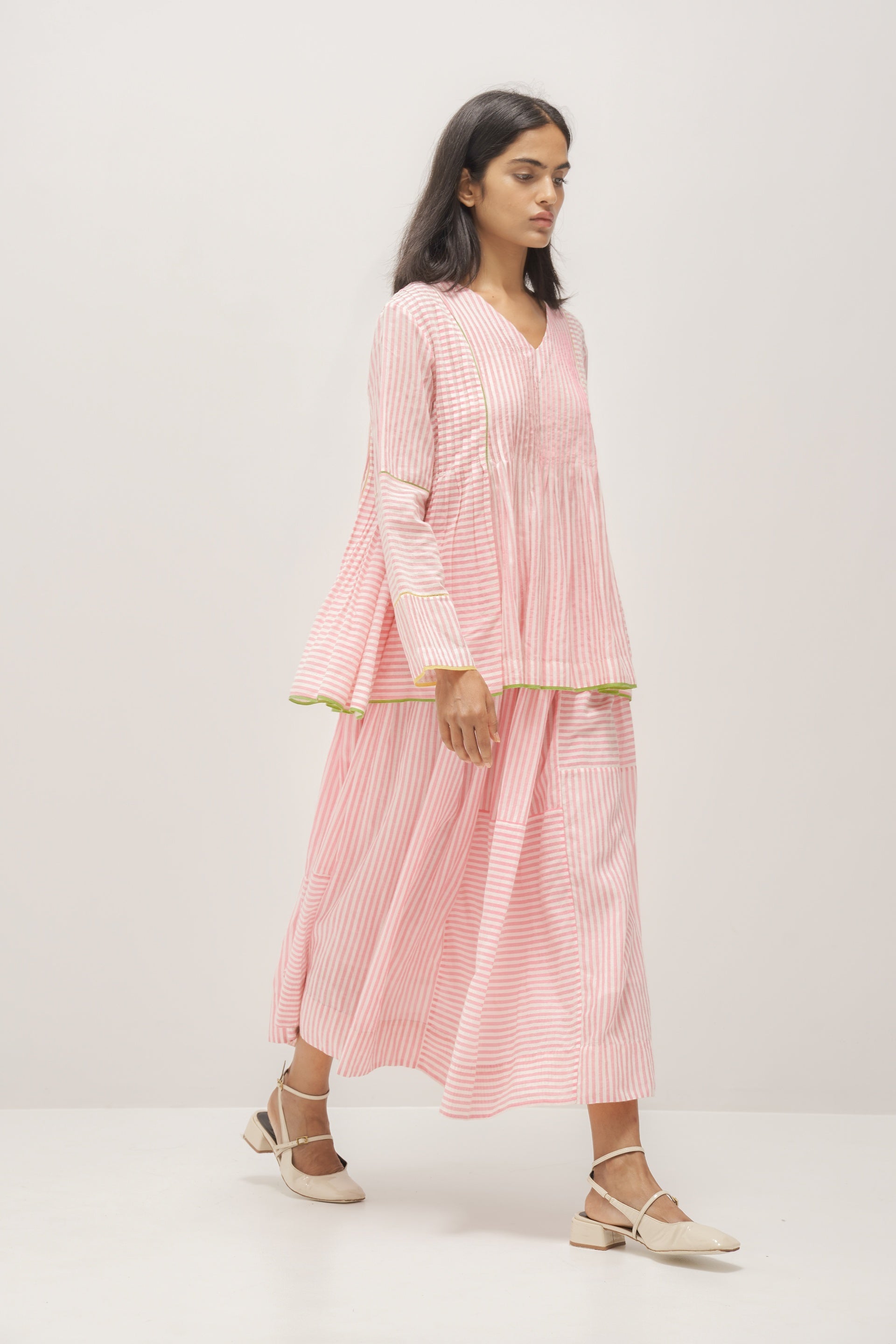 Pink multipatch striper cotton silk handloom skirt. Comes with an attached printed cotton silk lining
