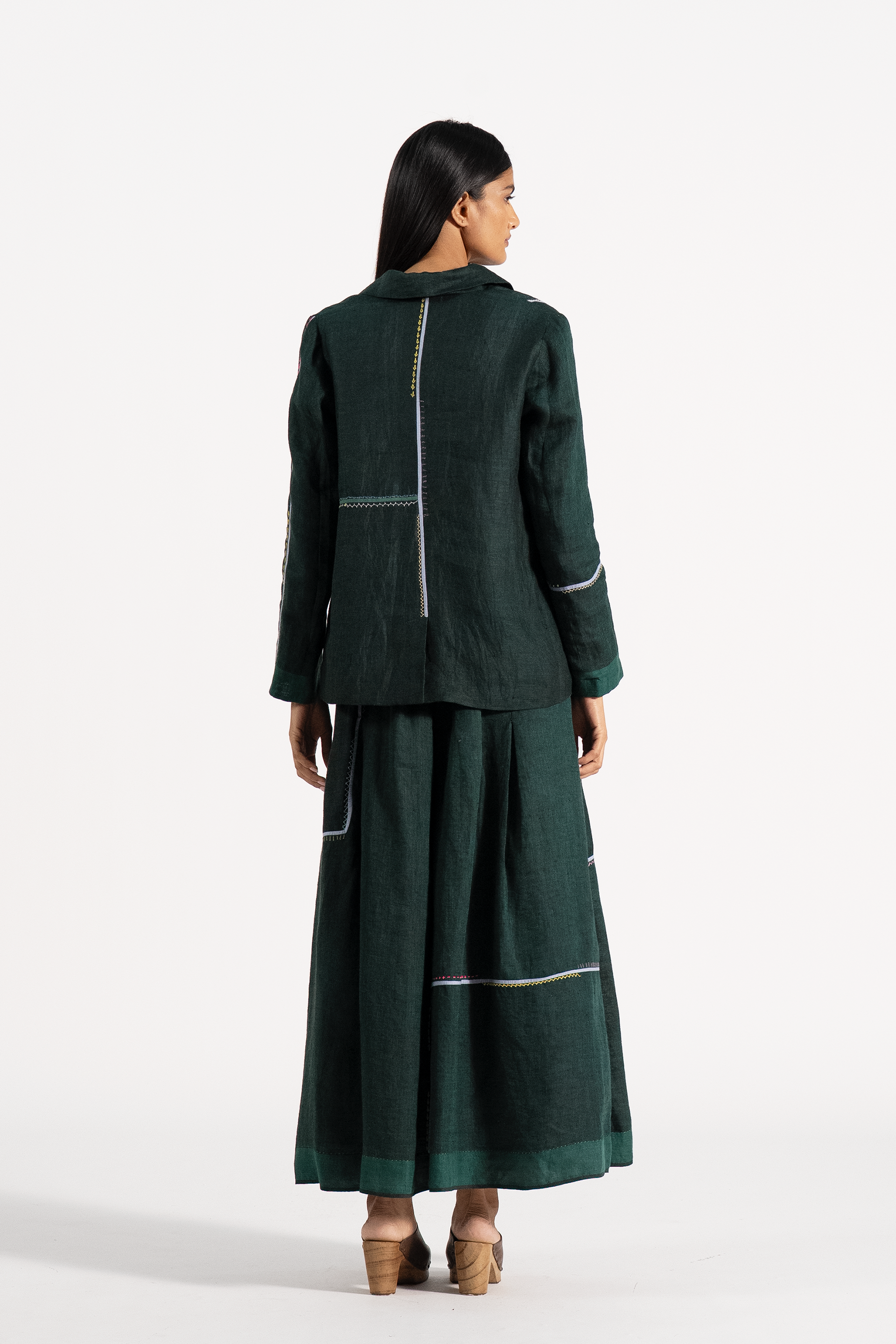 Relaxed Fit Double Brested Short Jacket With Multicolor And Delicate Hand Stitch Detail In 100% linen.