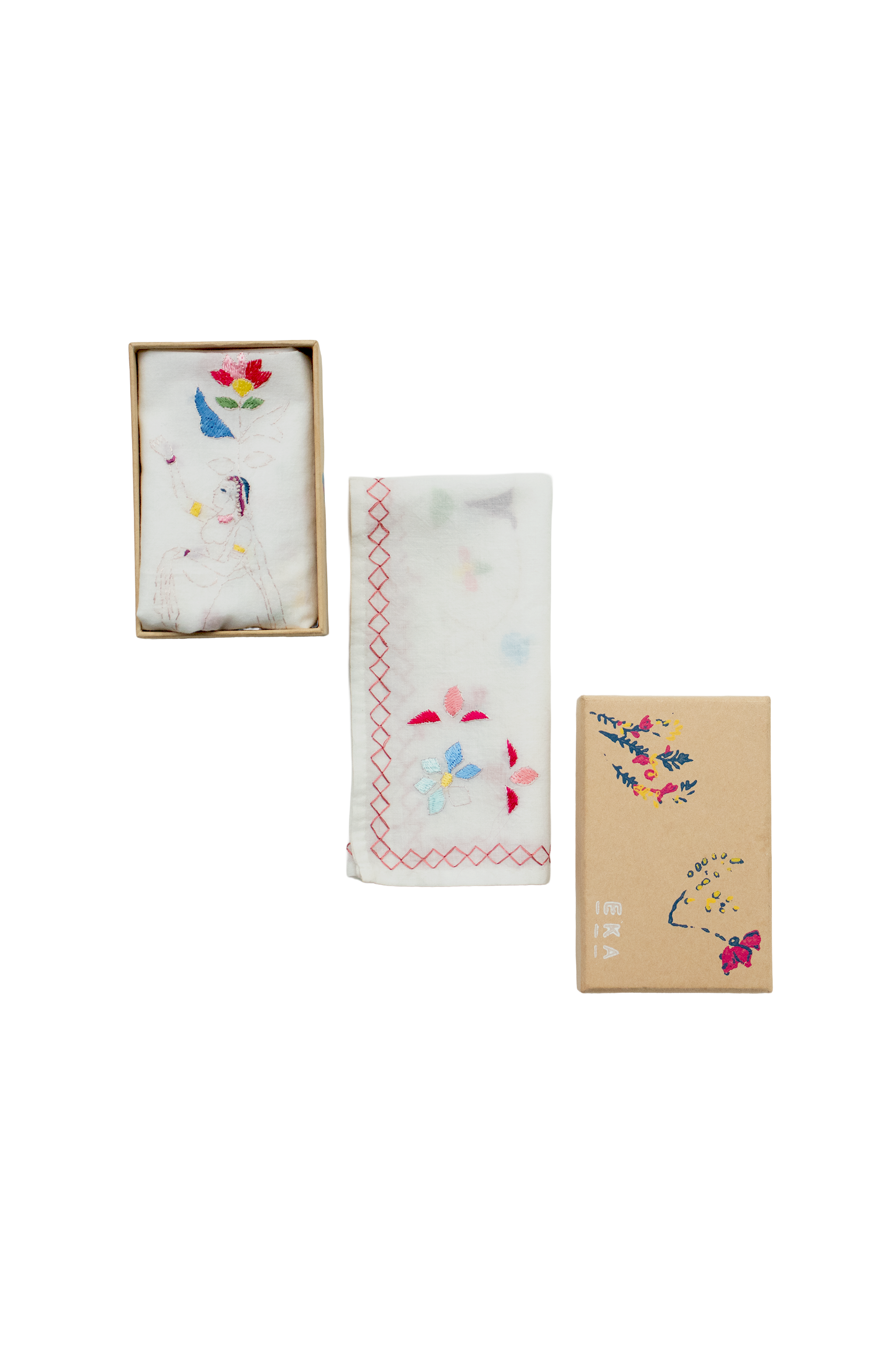 Set of two handkerchiefs inspired by the original Chamba rumal, delicately detailed and presented in attractive gift packaging.
