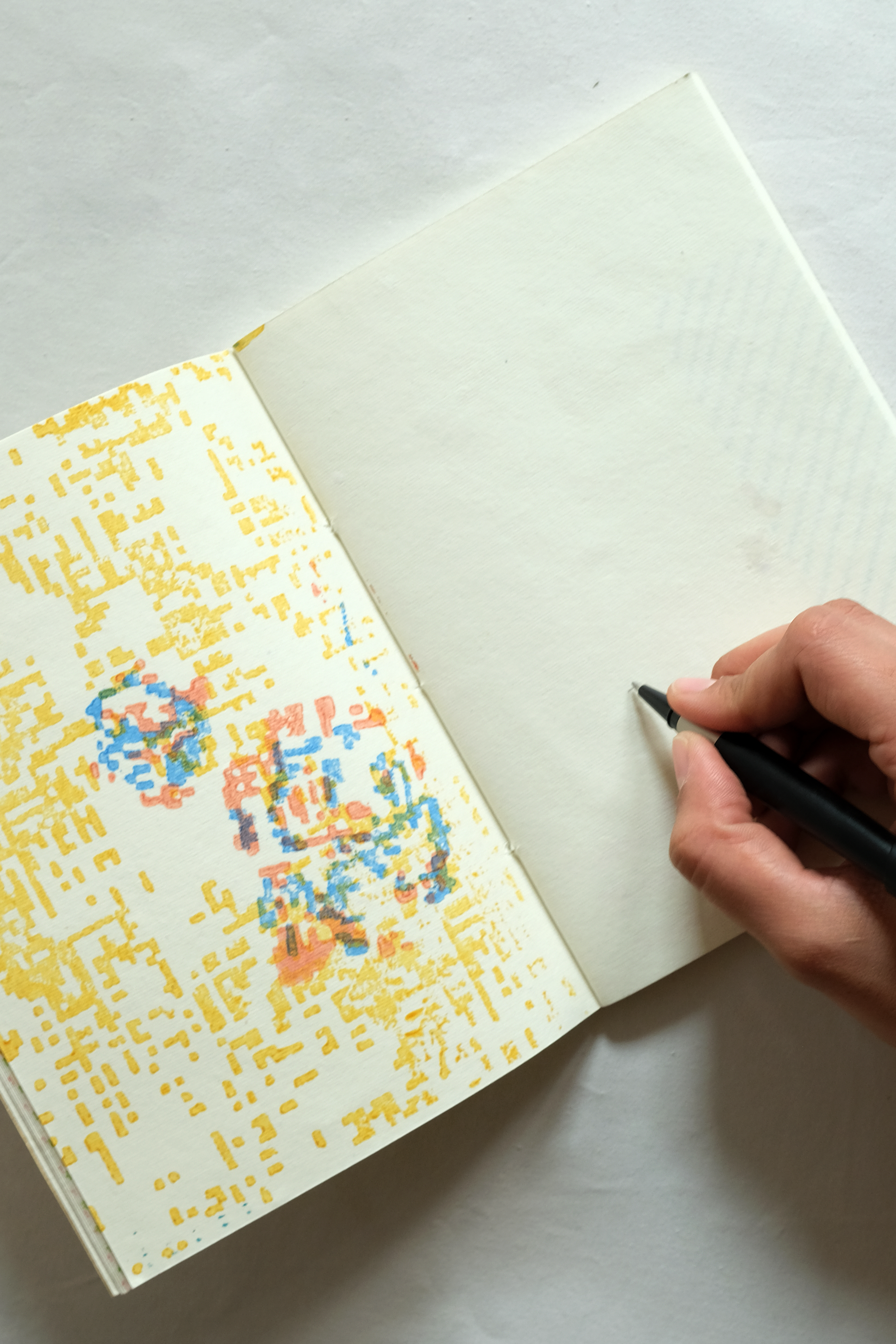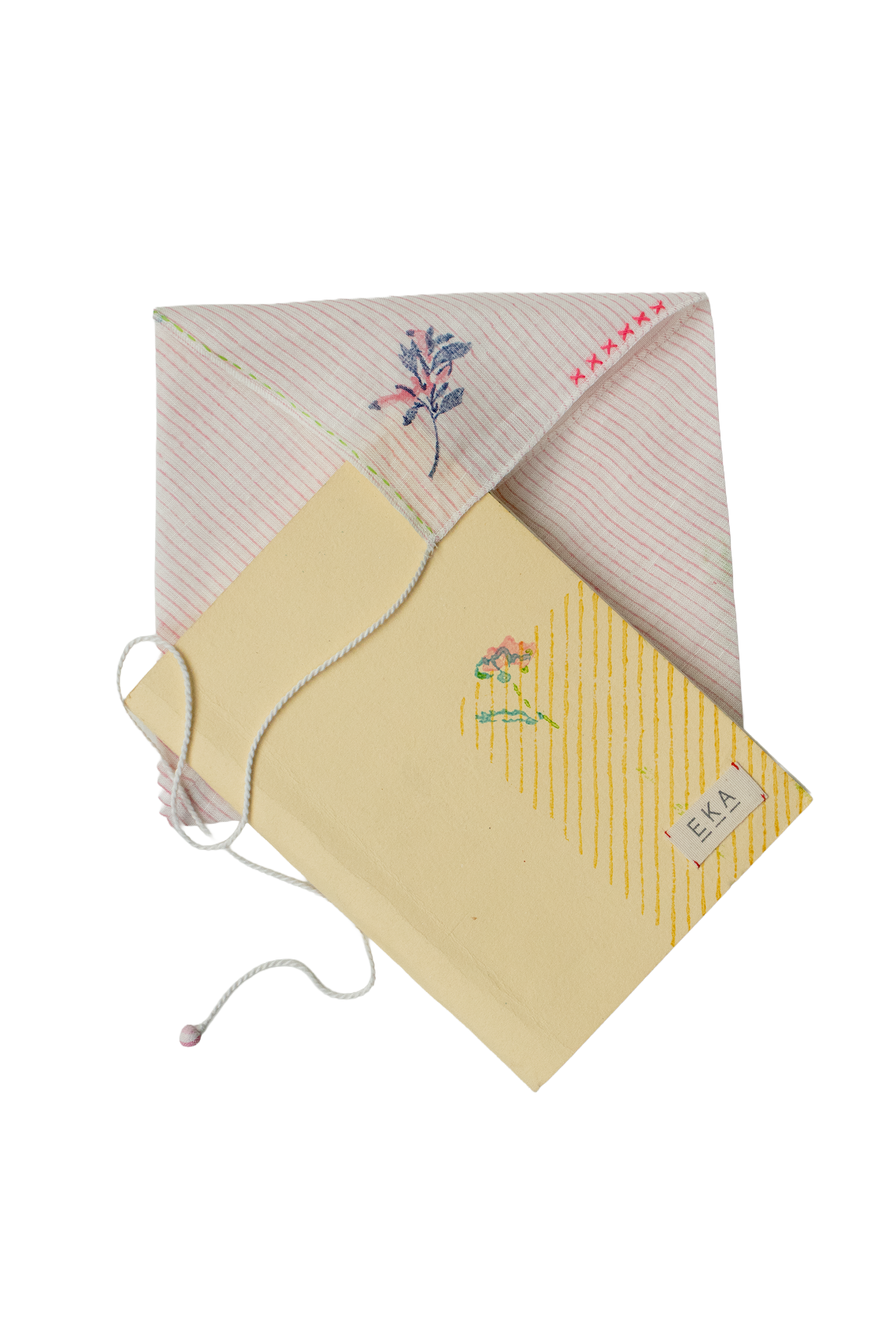 Handcrafted kit featuring a handmade paper notebook and Kota Doria napkins, all adorned with delicate hand-block prints.