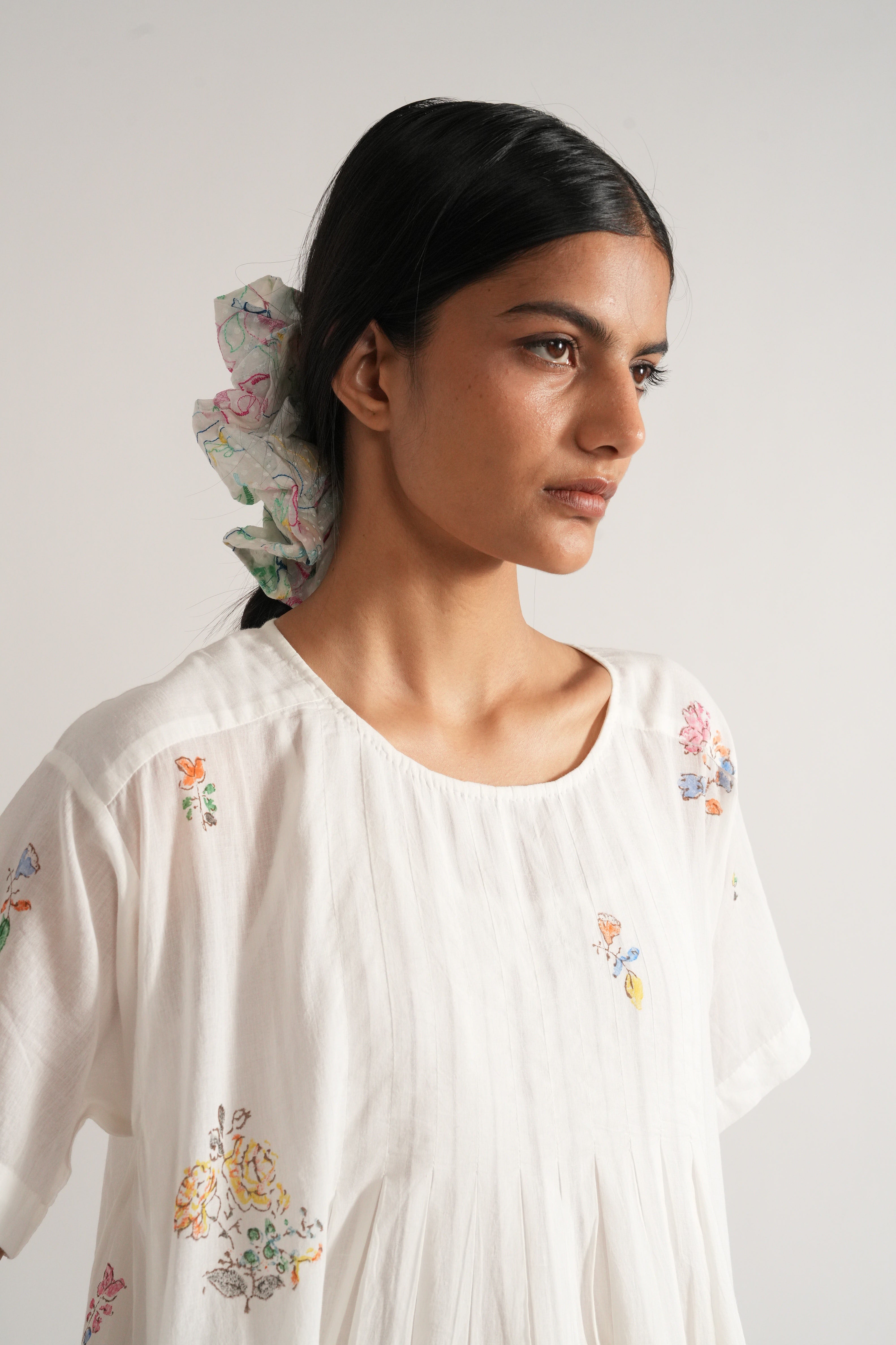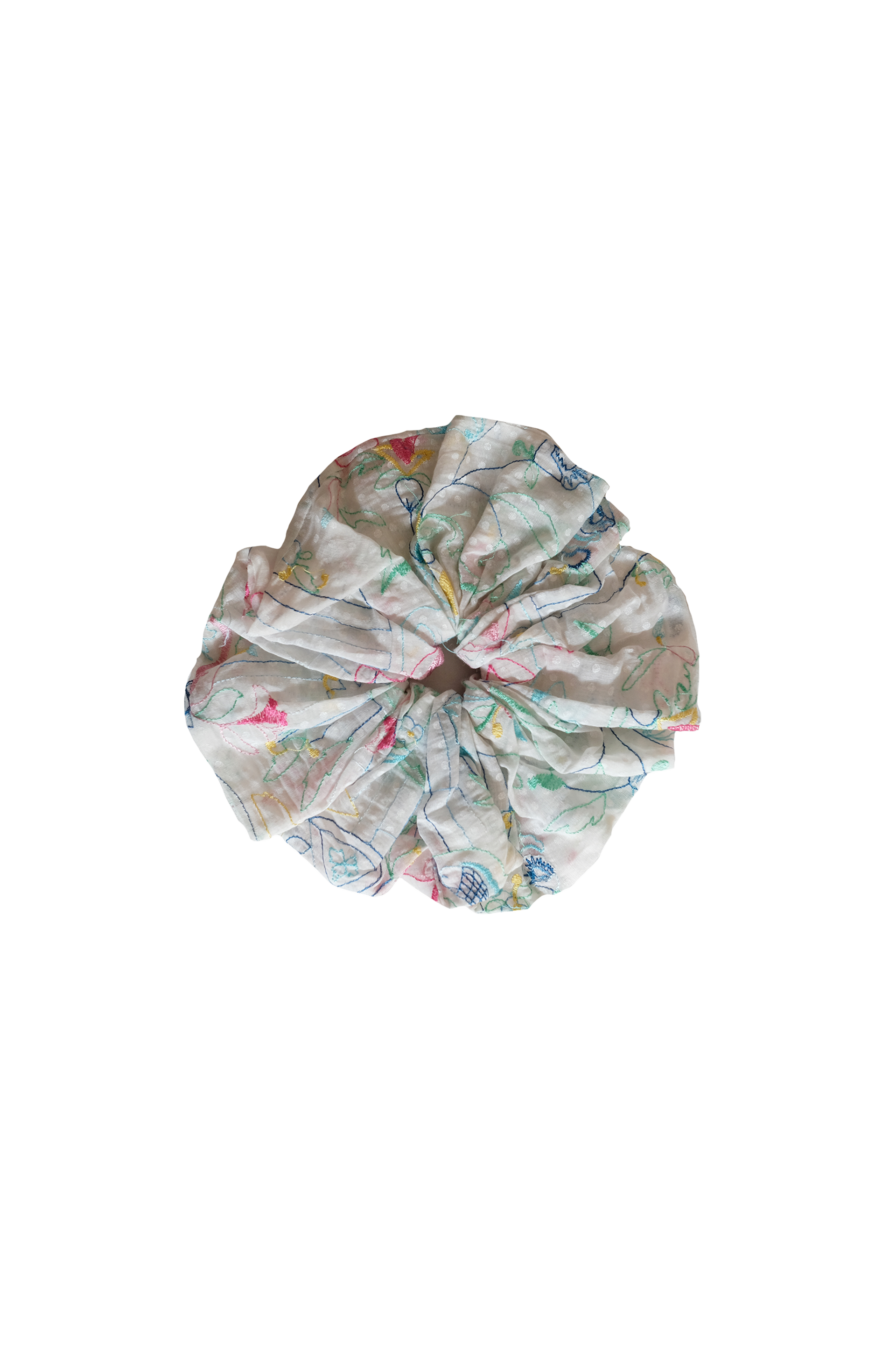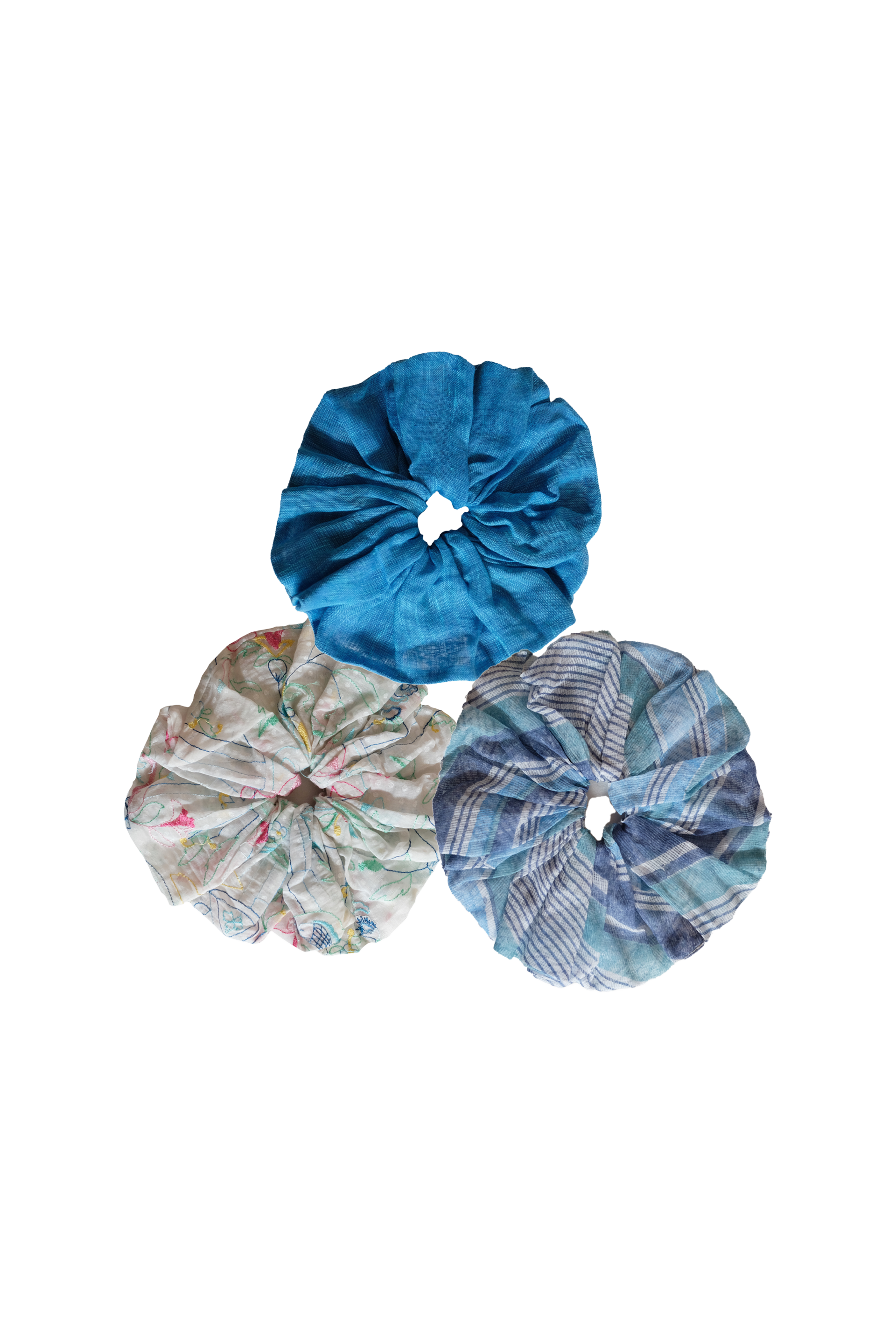 Oversized assorted fabric scrunchies with a soft, gathered texture