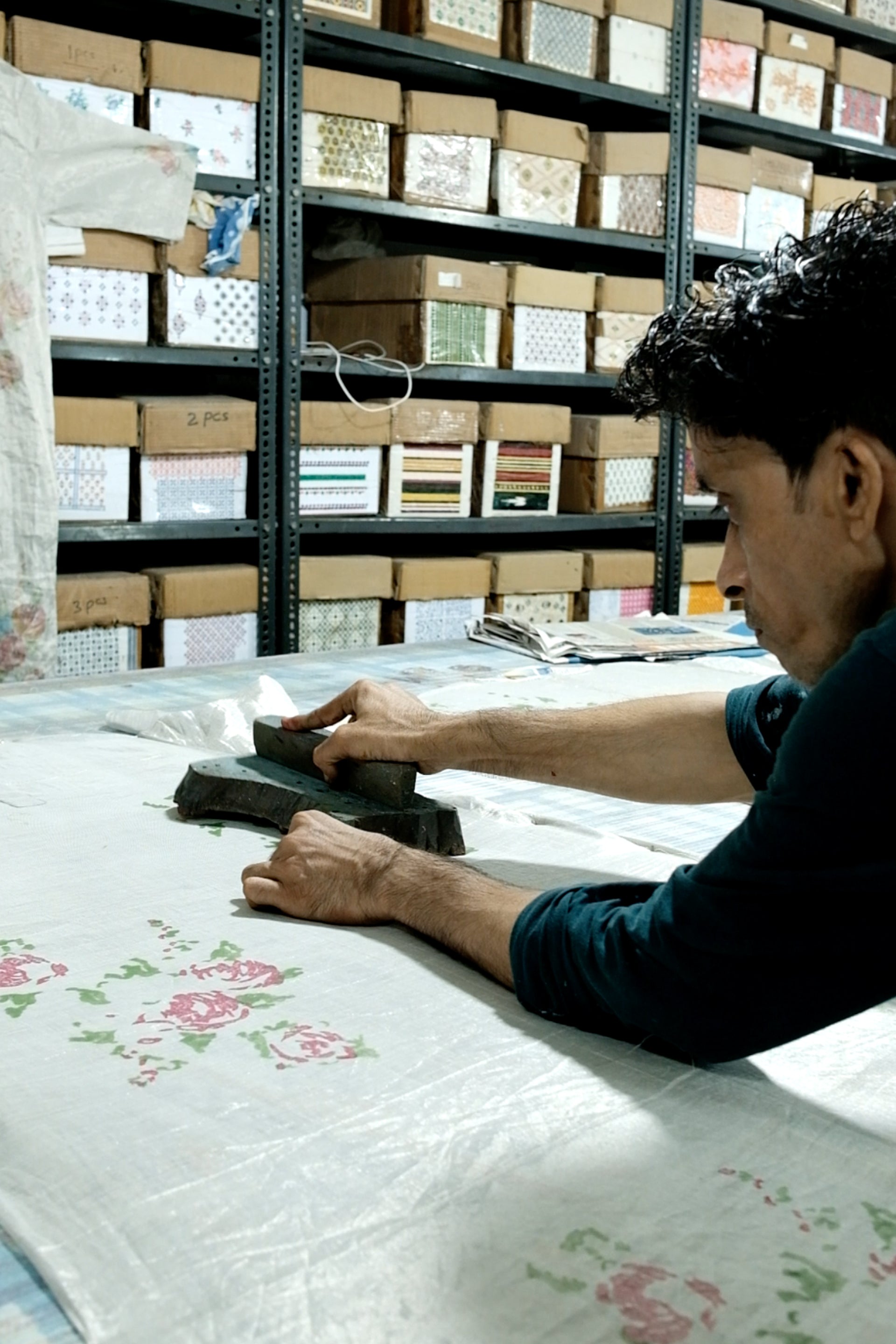 Fabric Specification: Placement Hand Block Printed Handwoven Linen Zari Tissue