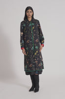 Button Down Straight Fit Jacket With Flat Collar With Contast Piping And Double Gauze Padding In Multicolor All Over Print In 100% Merino Wool. Lined With Handblock Print 100% Silk.