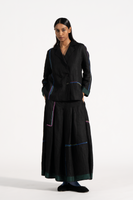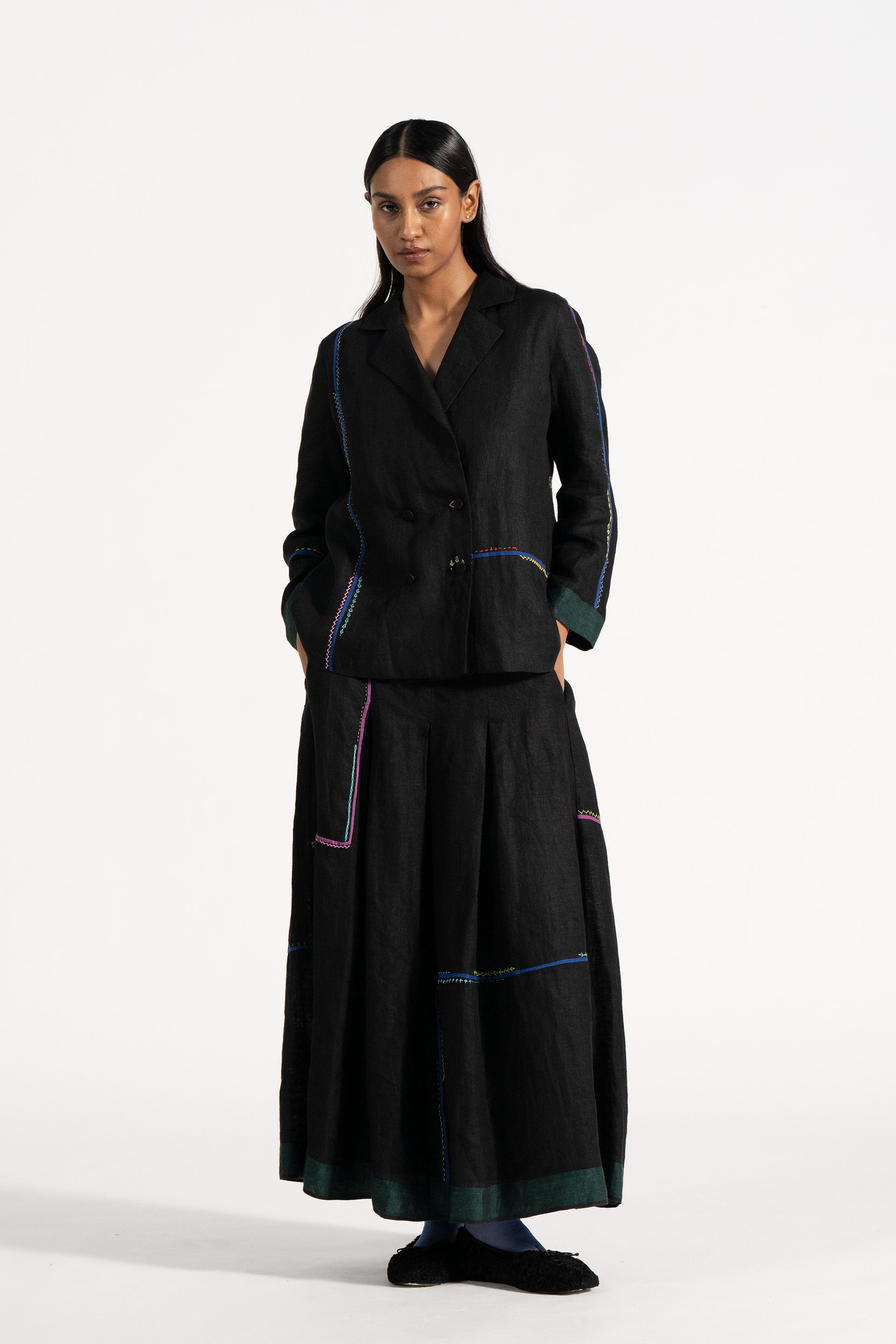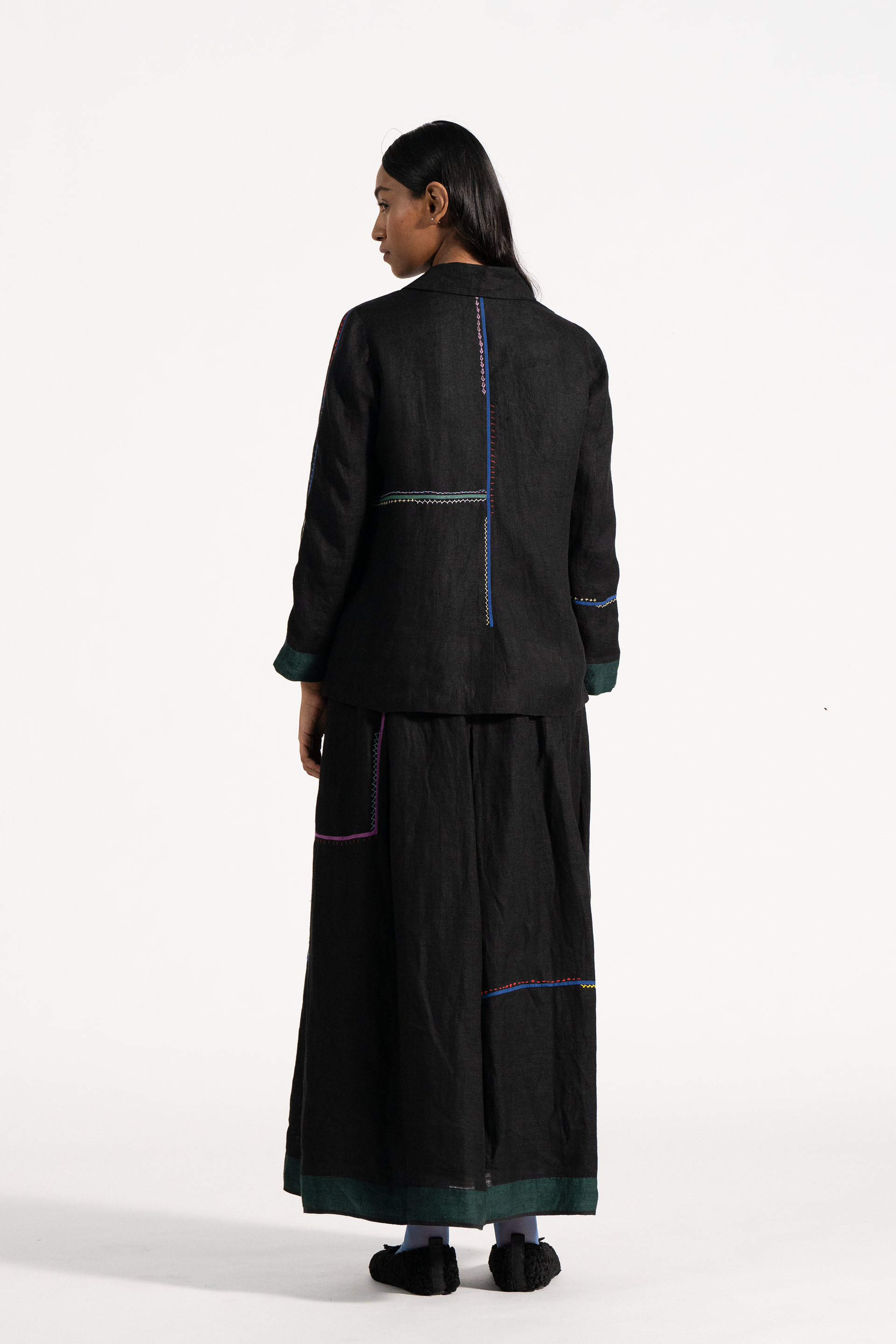 Relaxed Fit Short Jacket With Multicolor Delicate Hand Stitch Detail In 100% Linen Comes With Attcahed Lining.