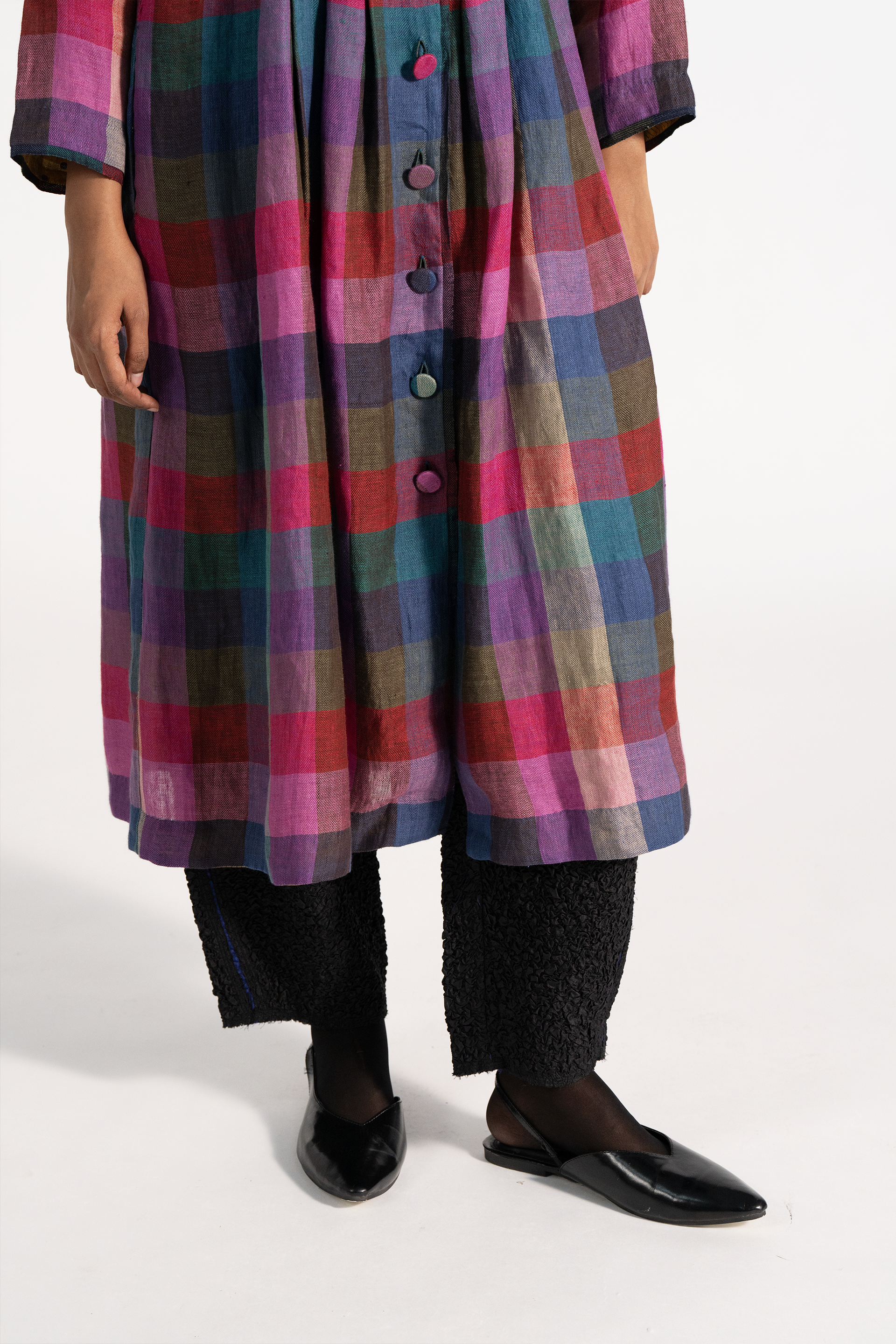 Relaxed Fit Full Button Down Dresds With Gathers In 100% Linen Twill.