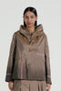 Short Hooded Jacekt In Multi Handblock Print And Stitch Placement On Ombre Dye In 100% Silk Tafetta. Coems With An Atached Handblock Print 100% Silk Lining.