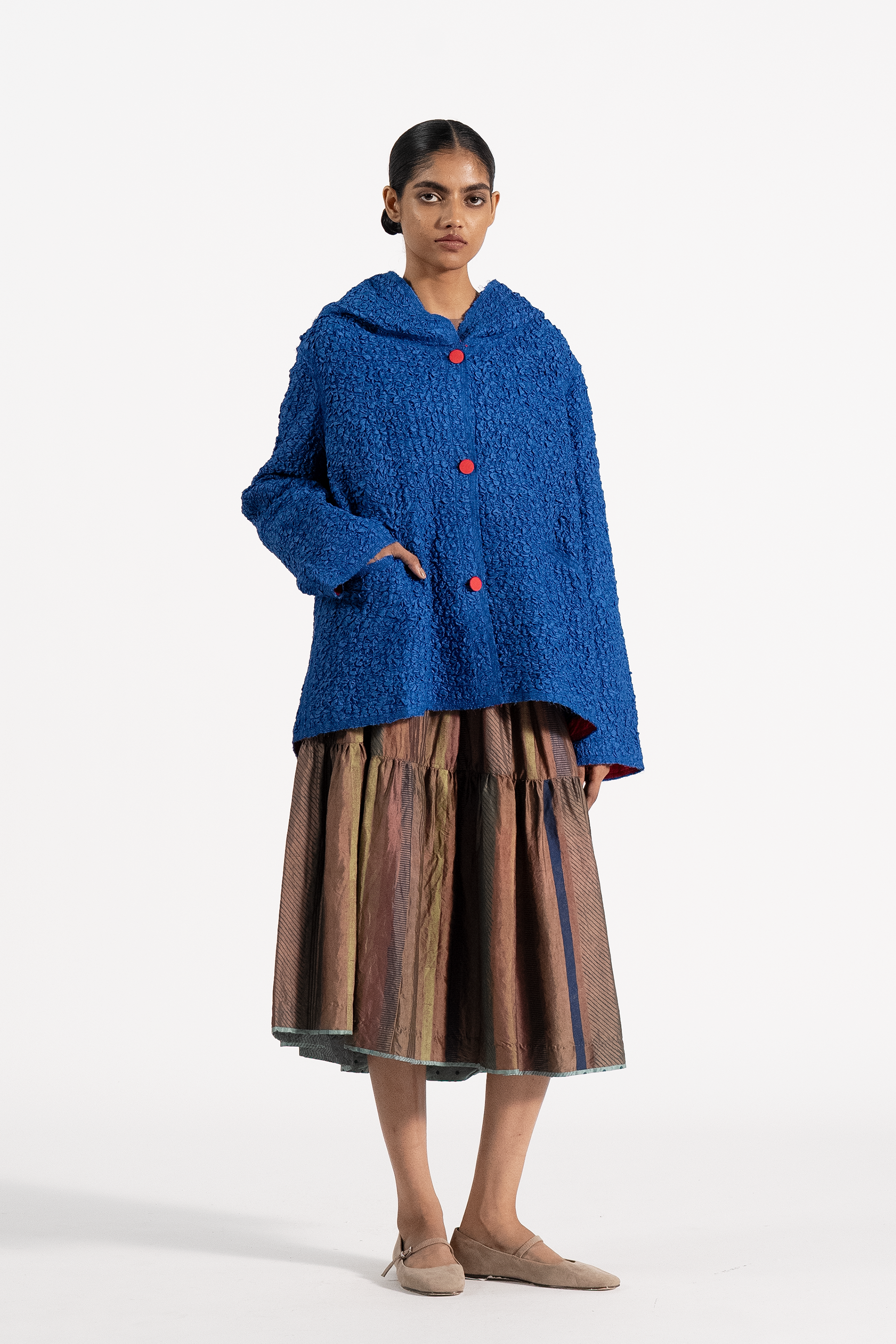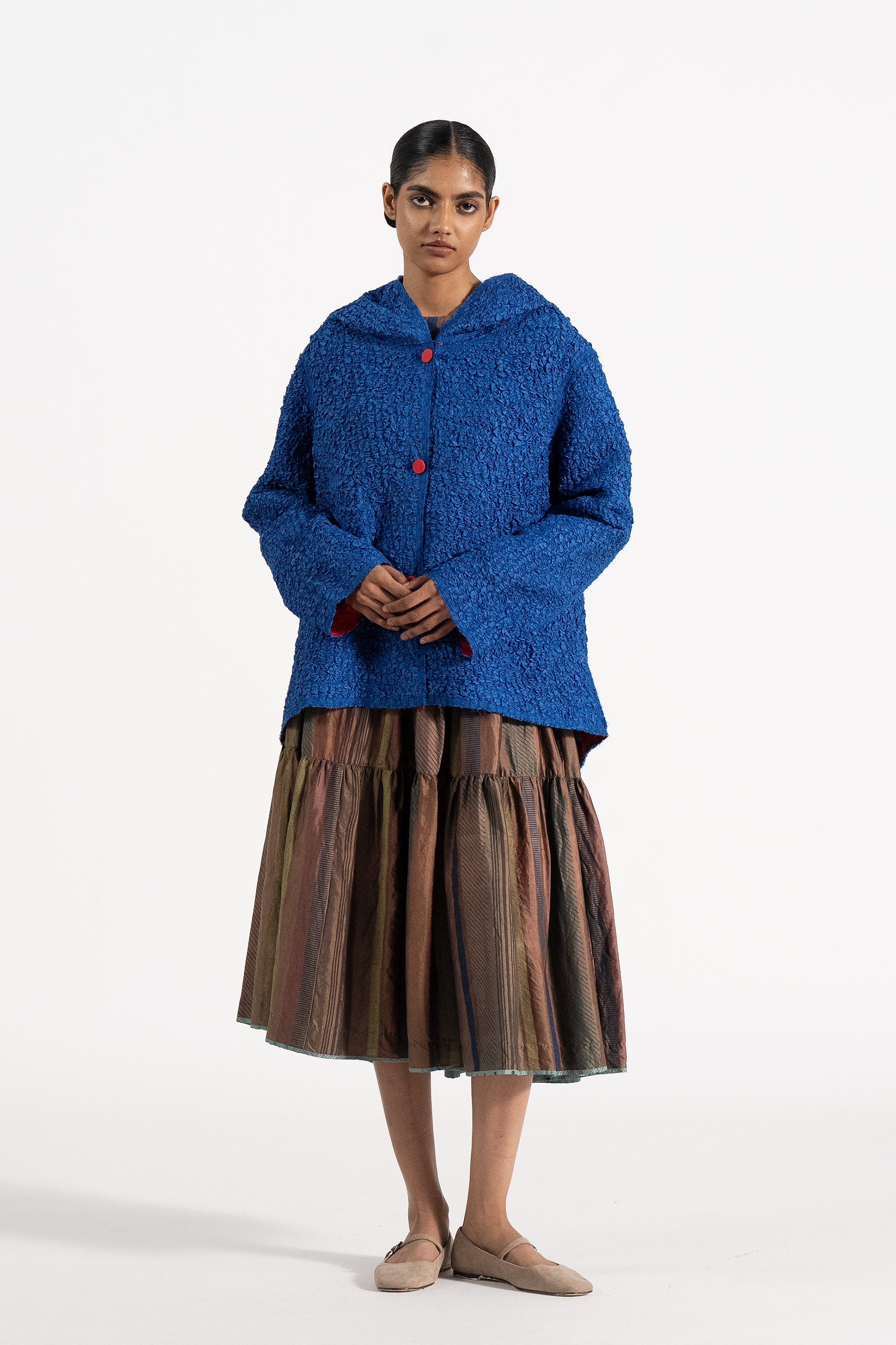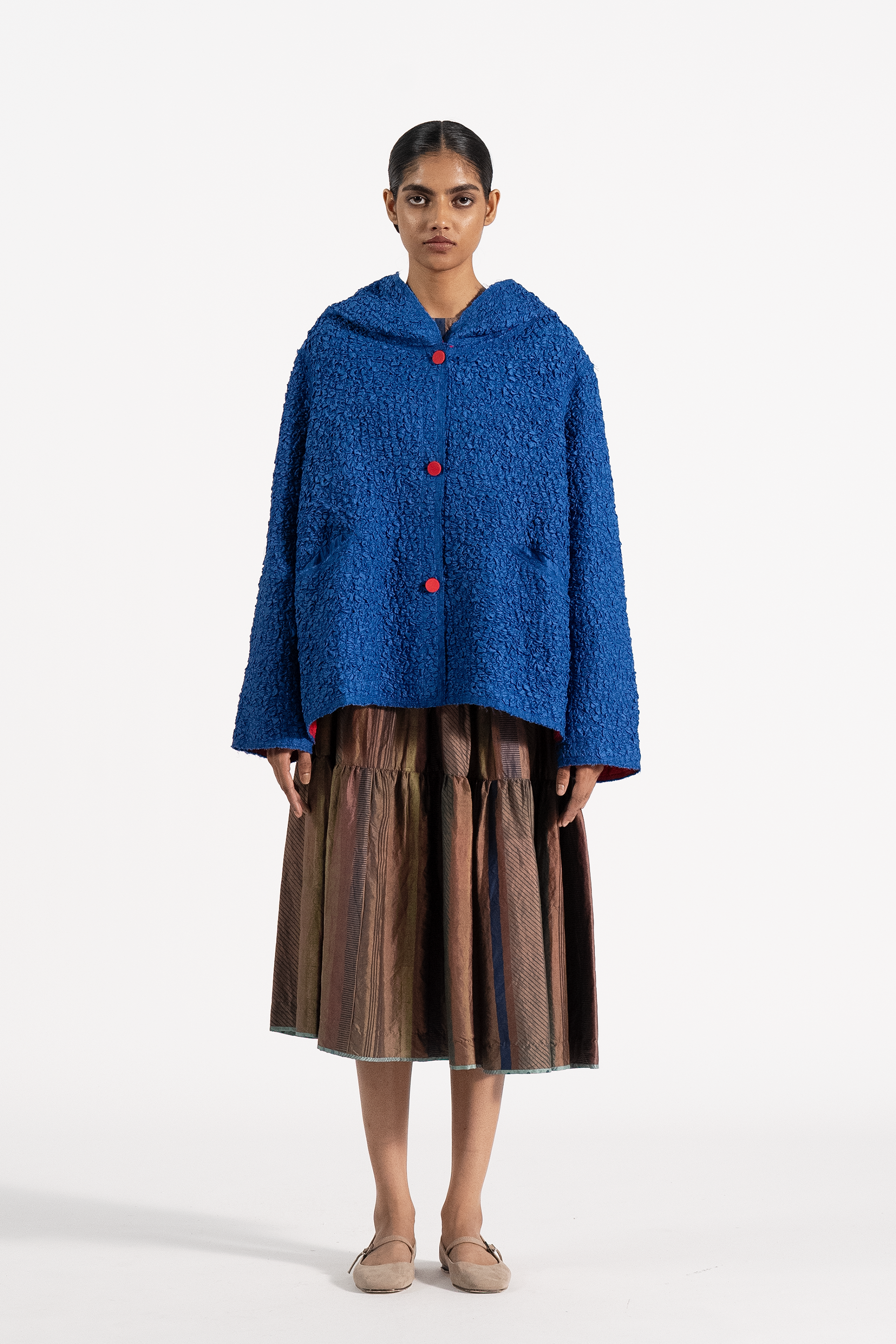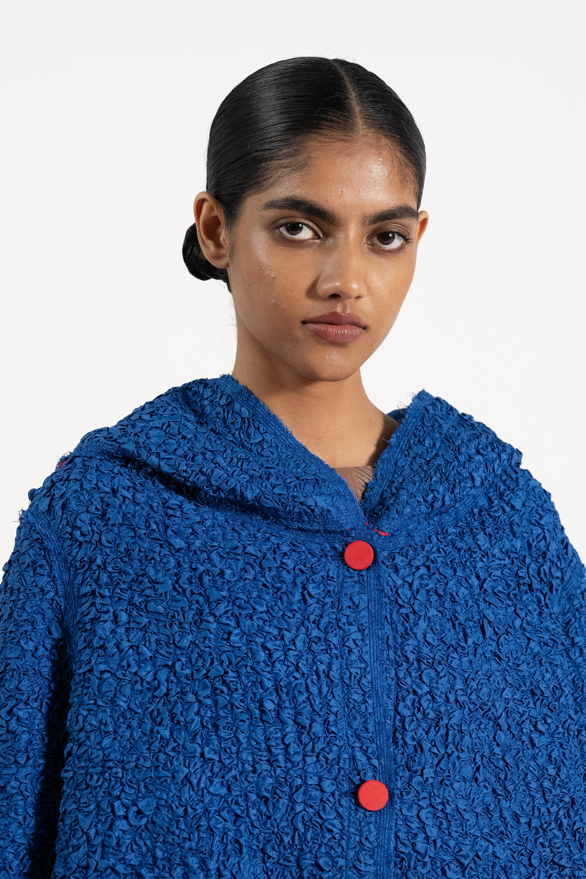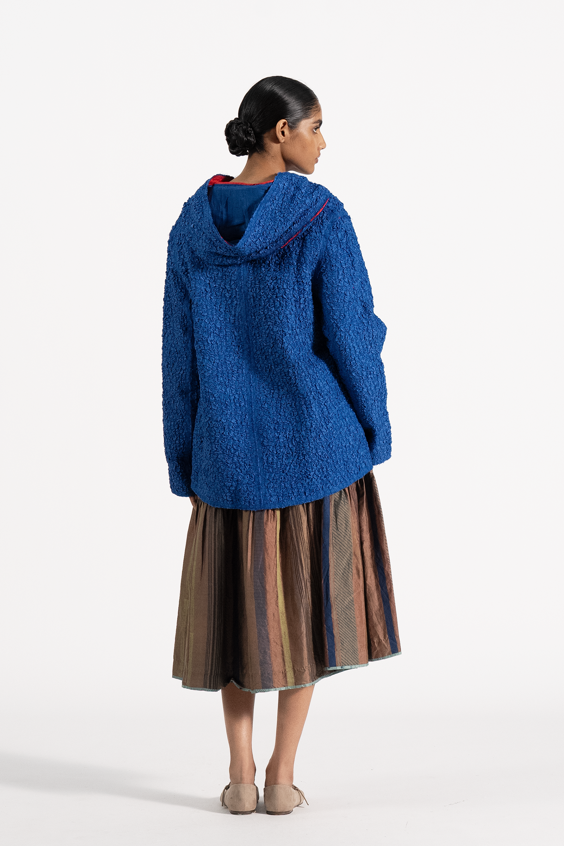 Short Hooded Jacket In 100% Smoked Textured Silk. Comes With An Attached Lining.