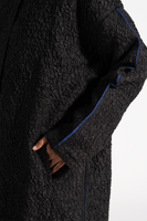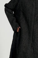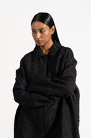 Johnny Collar Button Down Full Sleeved Relaxed Fit Long Jacket With Raw Edges In 100% Smocked Textured Silk. Comes With Attached Lining.