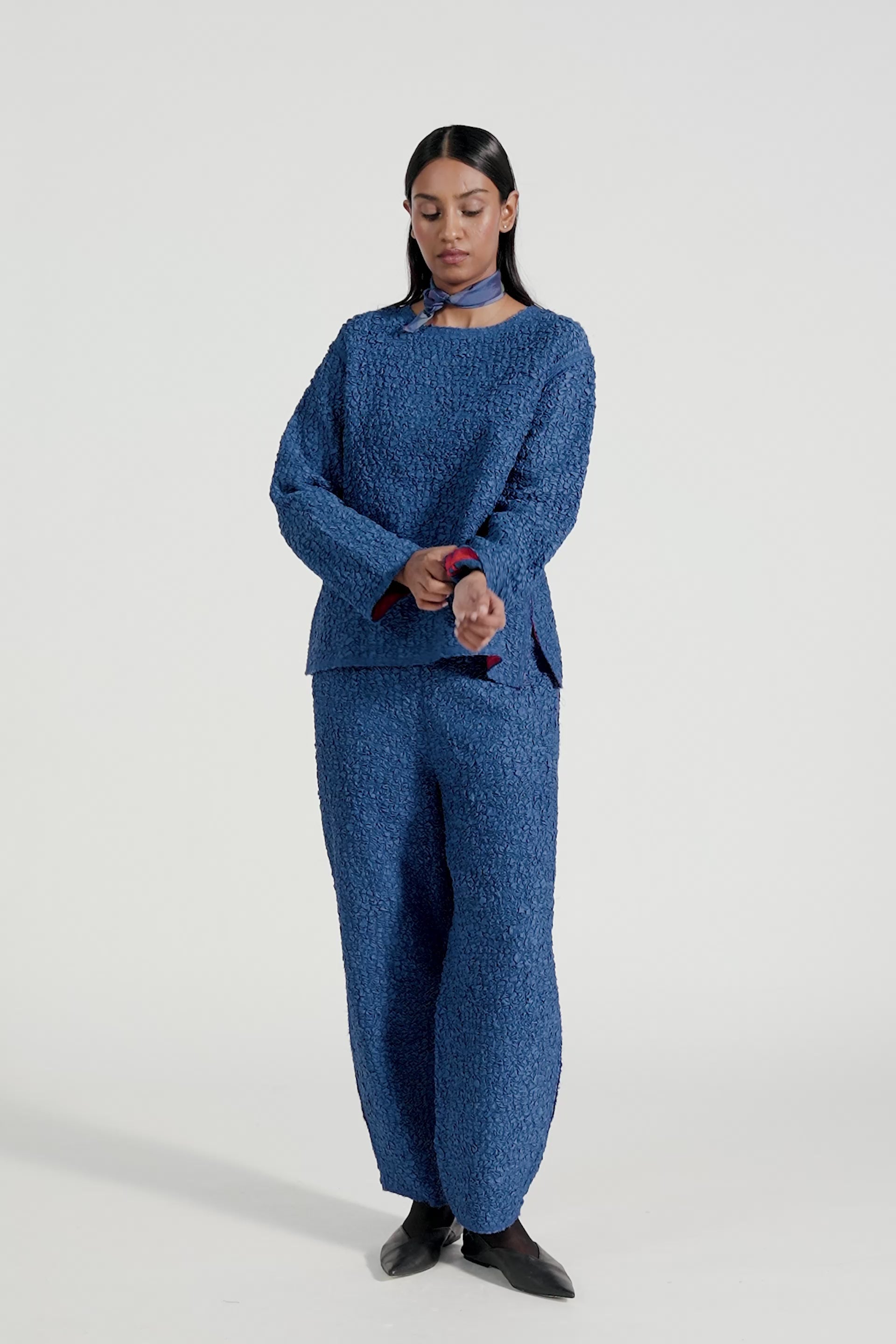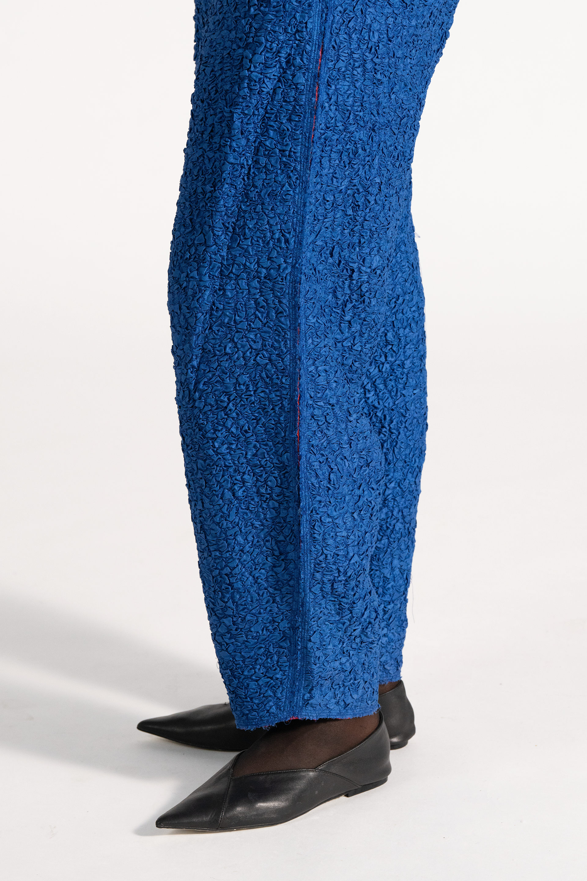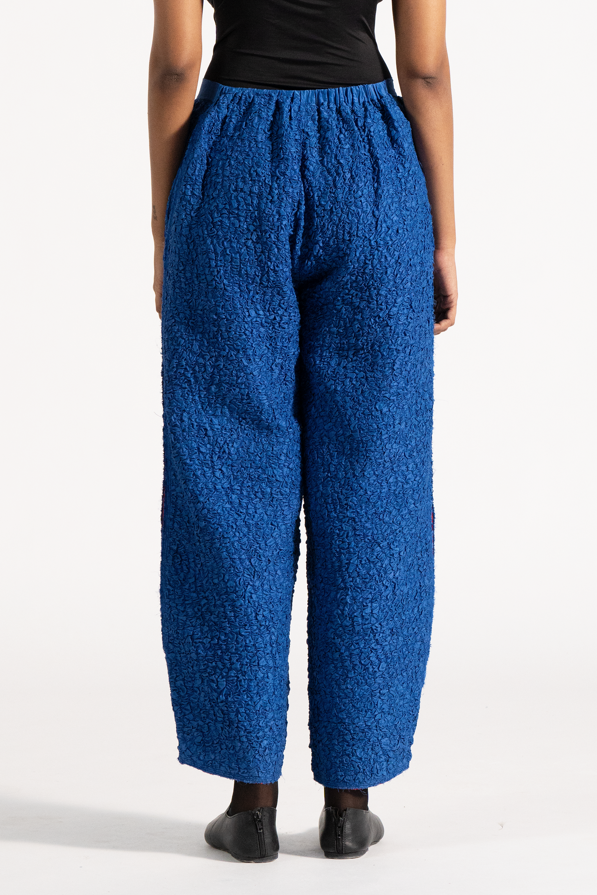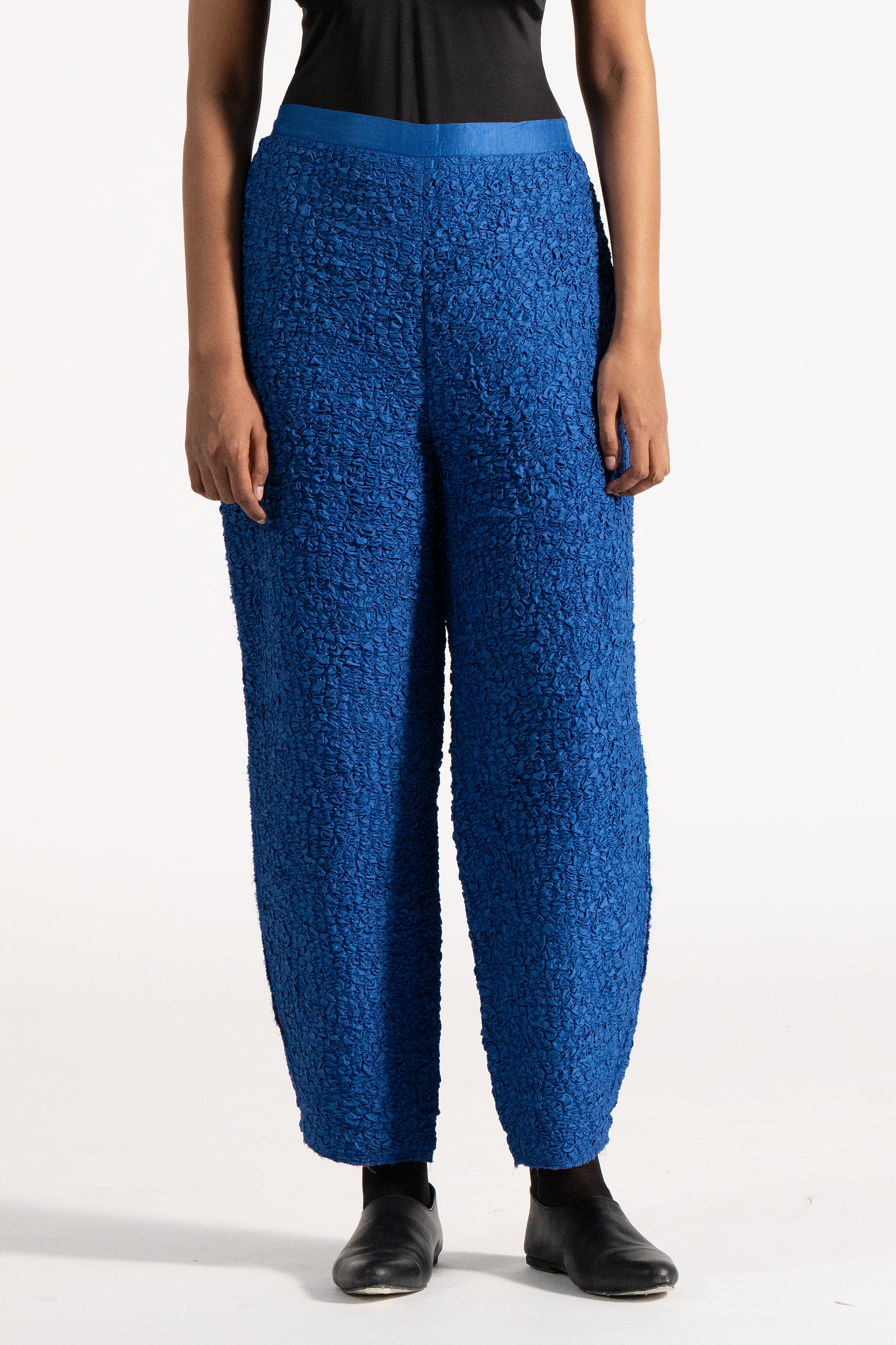 Baggy High Waist Trousers In 100% Smocked Textured Silk .