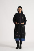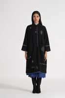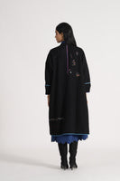 Button Down Baggy Fit Jacket With Multicolor And Delcate Hand Stitch Details And Placement Floral Hand Embroidery On Wool Linen Fabric. Lined With Handblock Print 100% Silk.
