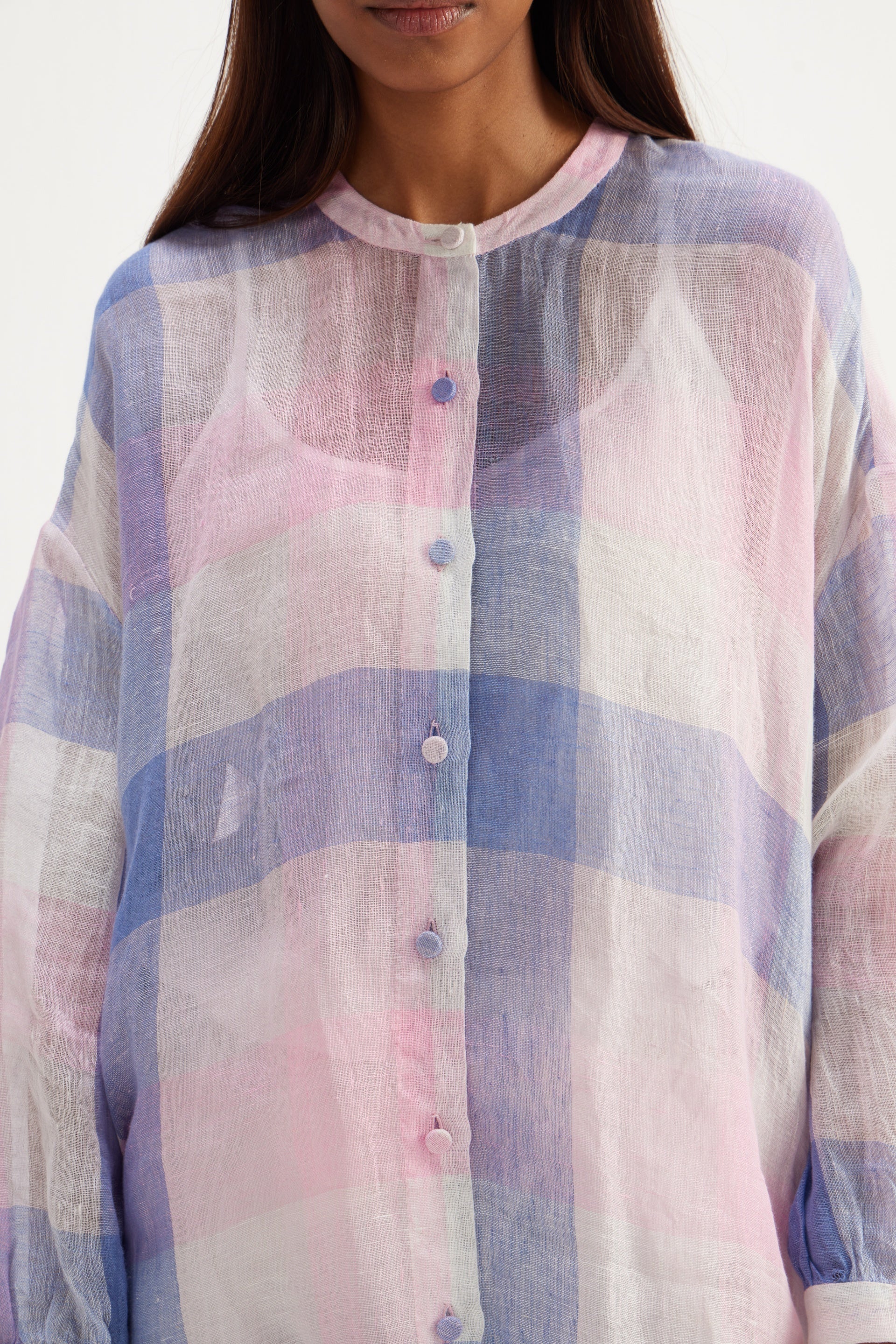 Midi length front open checked shirt dress . Comes with seperate lining.