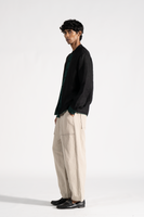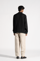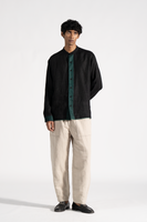 Mandrin collar straight fit button down full sleeve shirt with placket and cuff detail.
