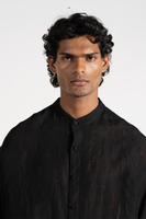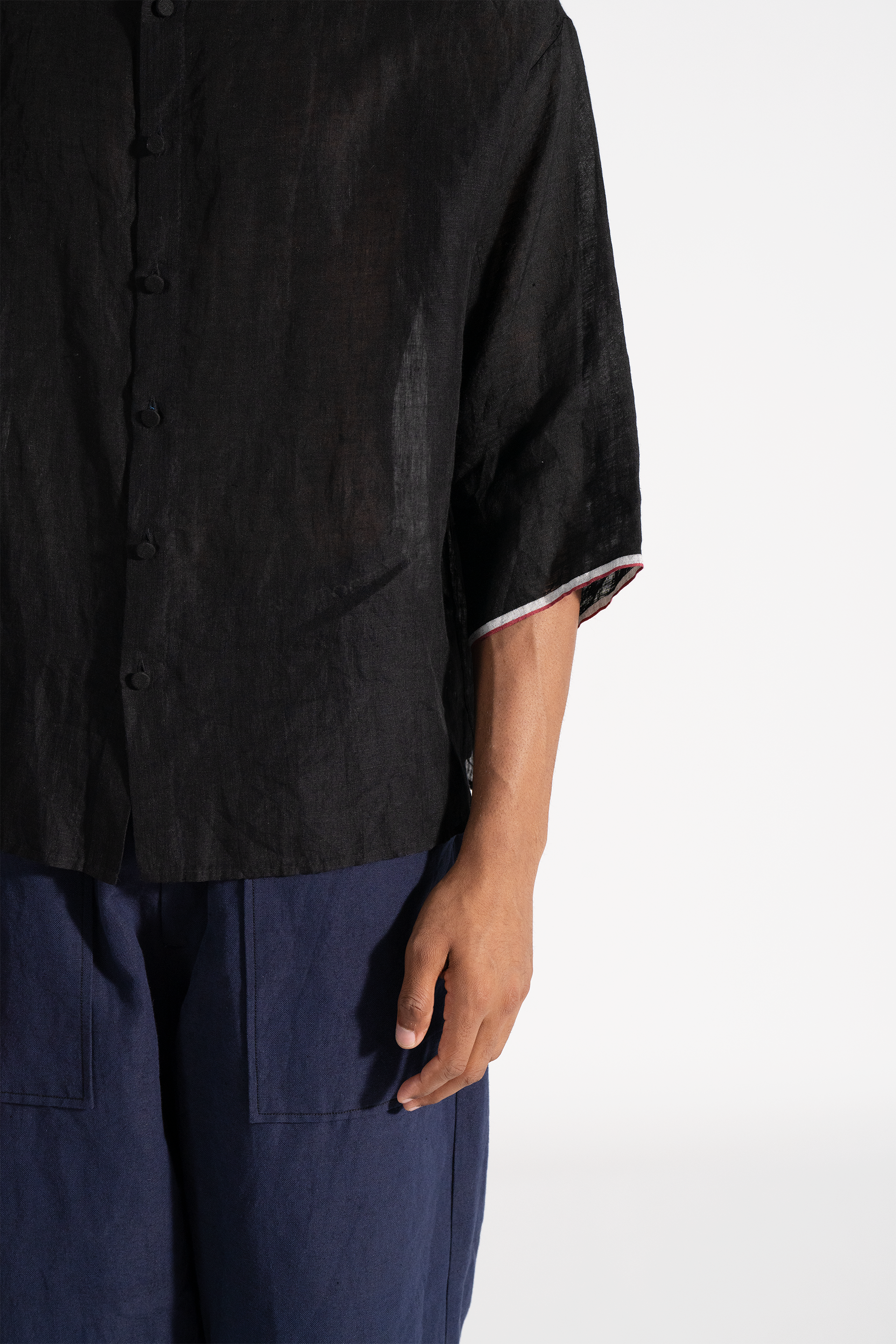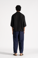 Mandarin collar relaxed fit shirt with 3/4 sleeve detail in khadi.