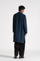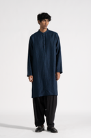 Mandarin collar front placket full sleeve long kurta with attached printed silk lining .