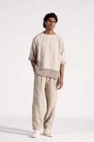 Crew neck relaxed fit with raglan sleeve linen t-shirt in dual tone.