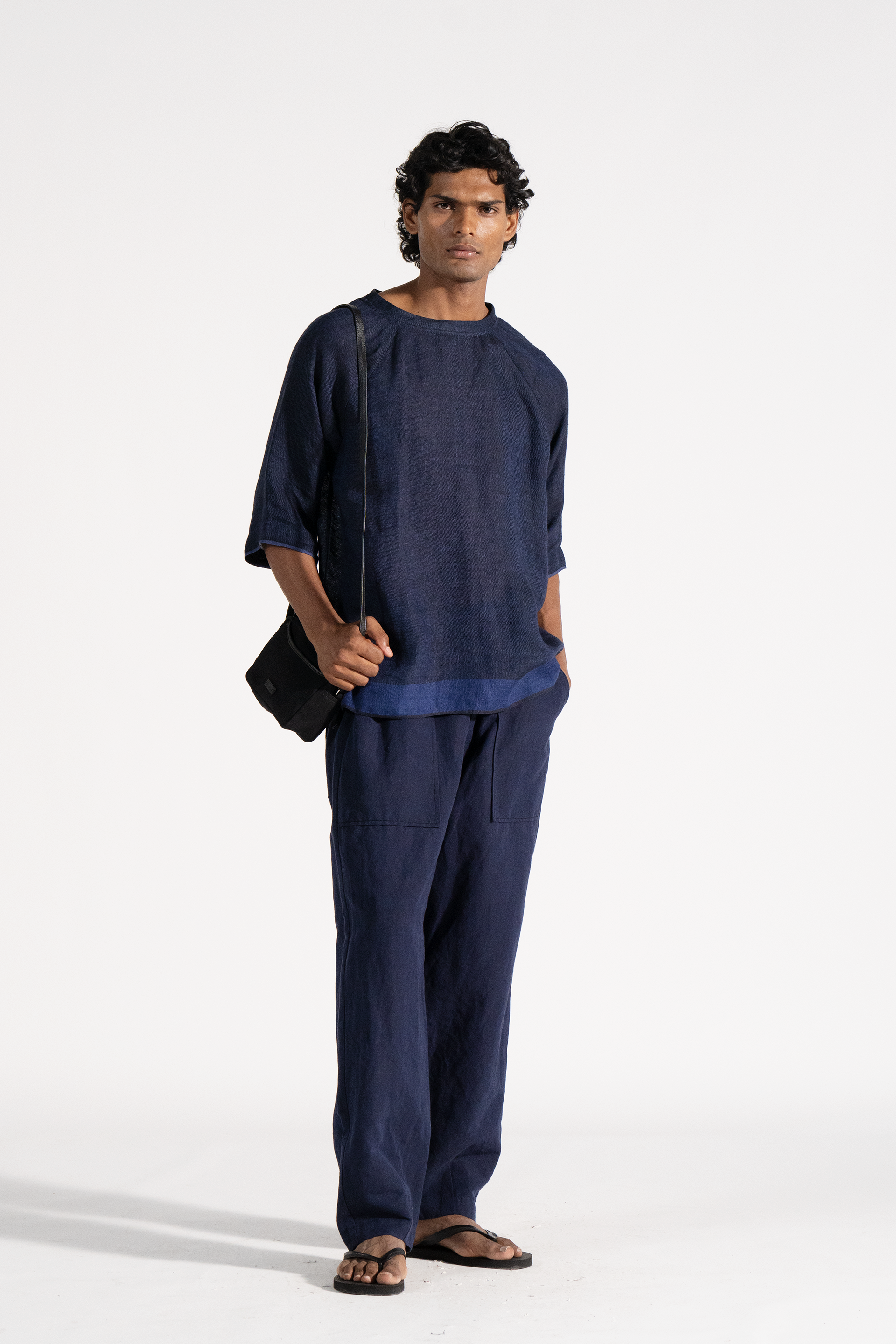 Crew neck t-shirt constructed in 100%linen fabric with border detail