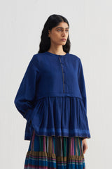 High waist tier with fine gathers maxi skirt with pintucks detail and side pockets. Constructed in thick and thin multicolor striper 100% merino wool fabric. Finished with solid 100% silk lining.