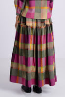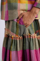Gathered tier maxi length skirt, constructed in multicolor checkered 100% wool fabric.