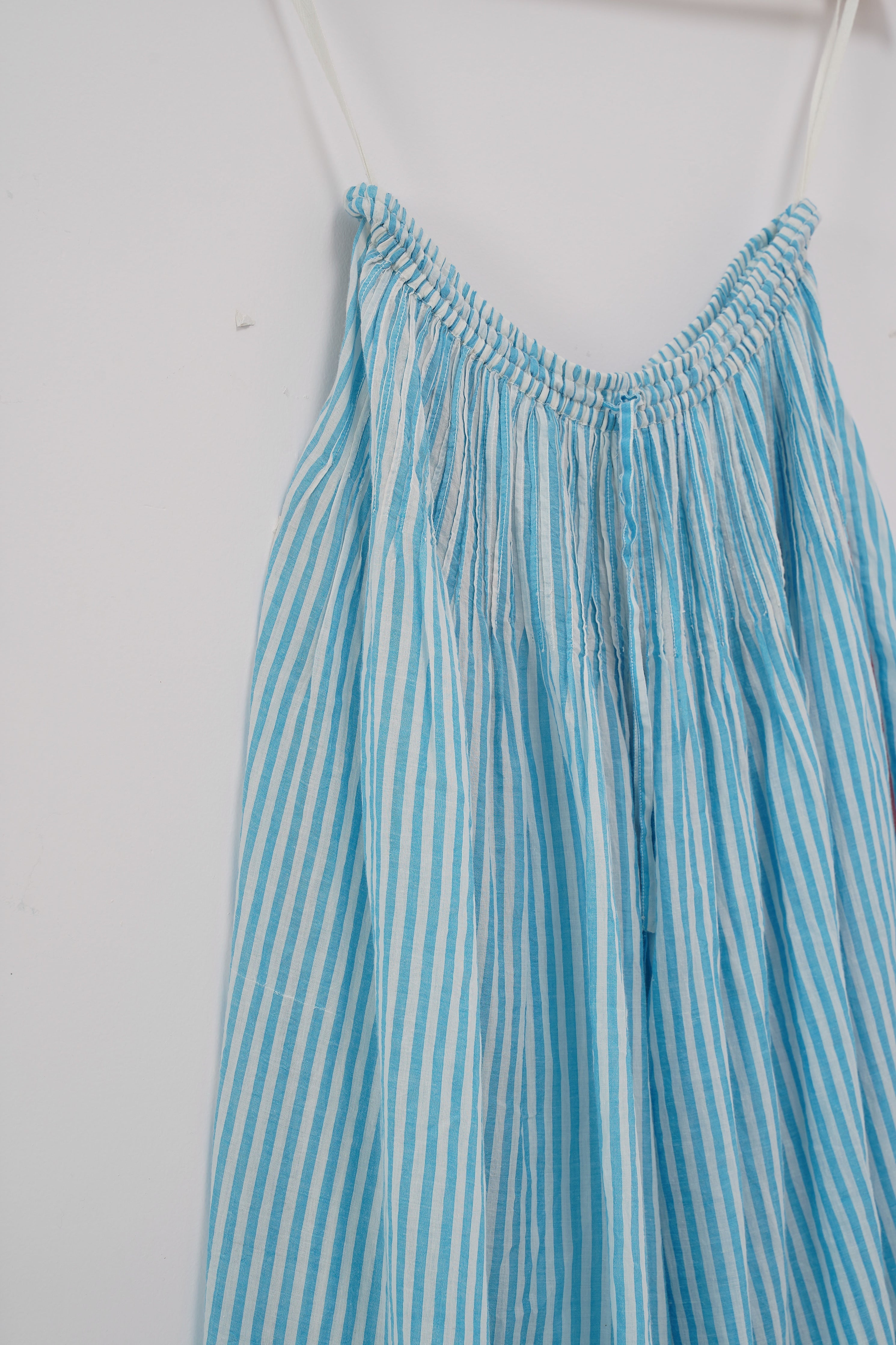 Blue cotton silk wide-leg trouser with all-over pintucks detail