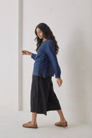 Black trouser with all over elasticated and flare hem,made in cotton
