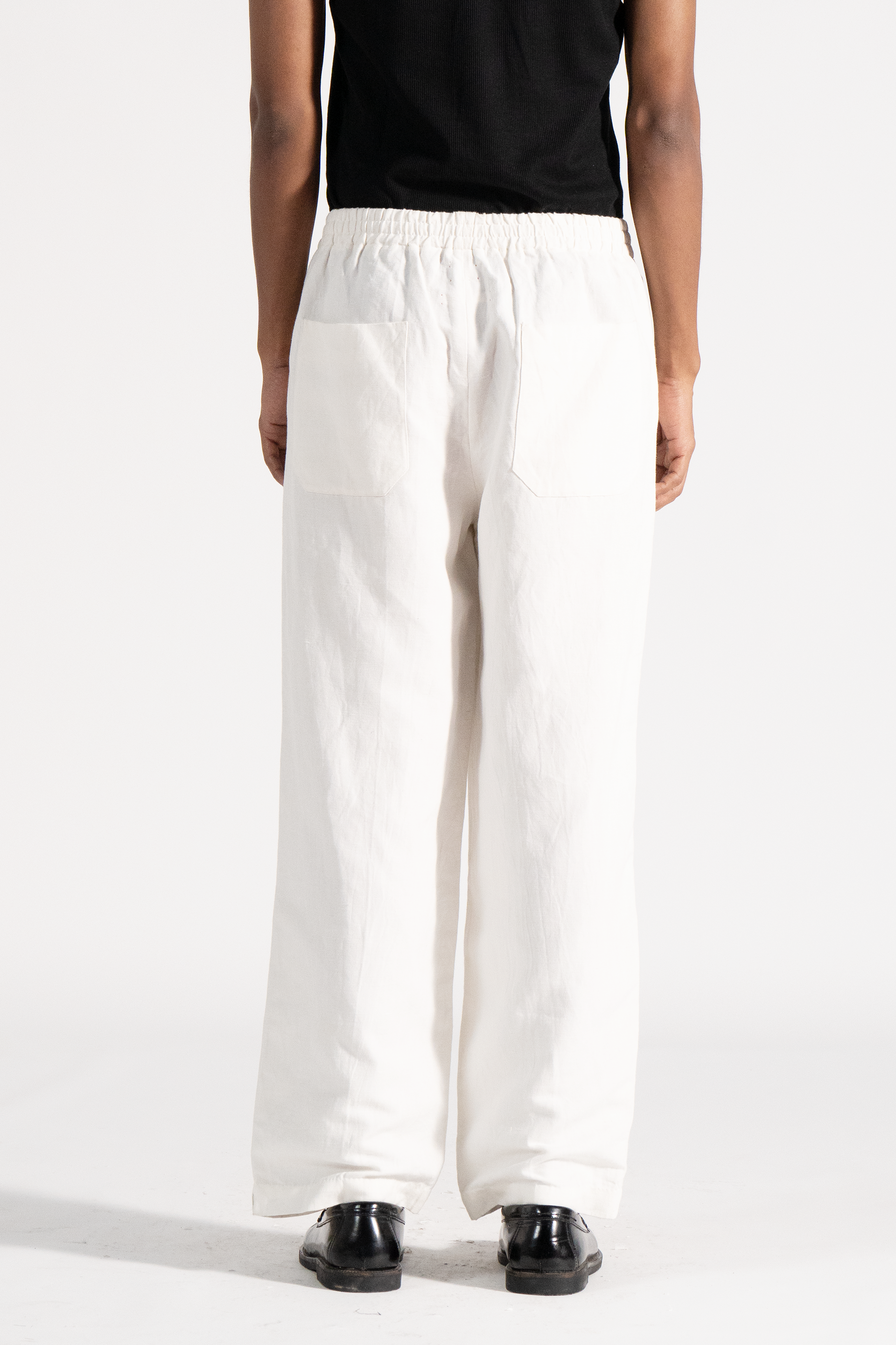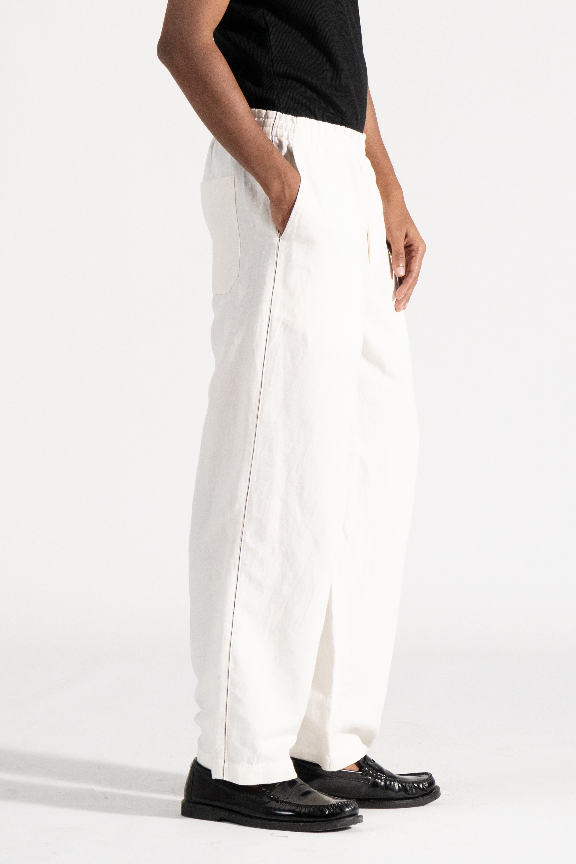 Baggy fit front pleat trouser cotton linen fabric.