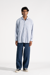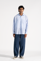 Baggy fit front and back patch pocket trouser with contrast thread in cotton linen fabric.