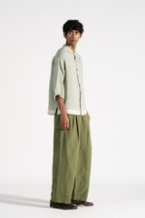 Baggy fit front pleat trouser with side pockets. Constructed in cotton linen fabric.