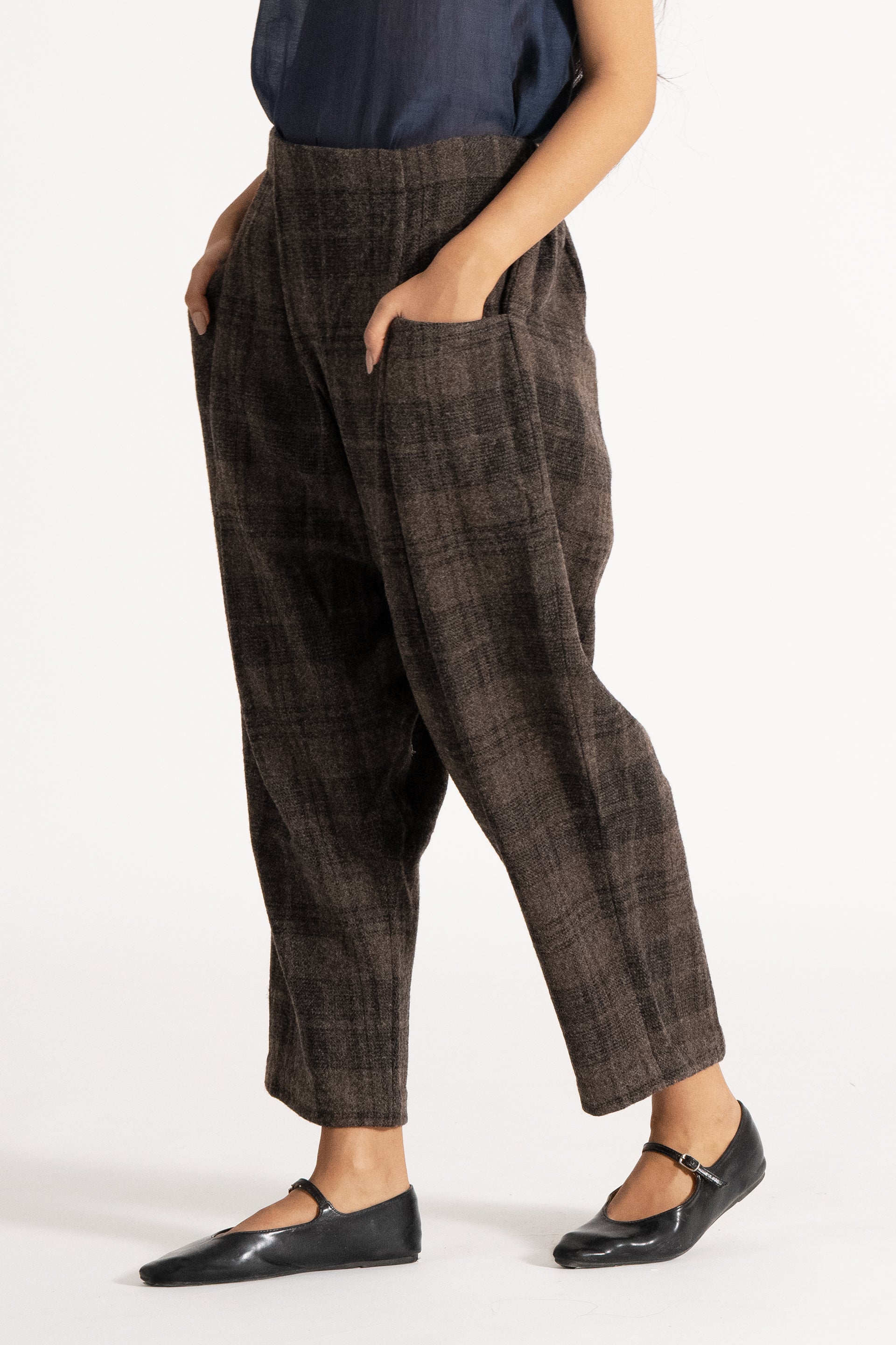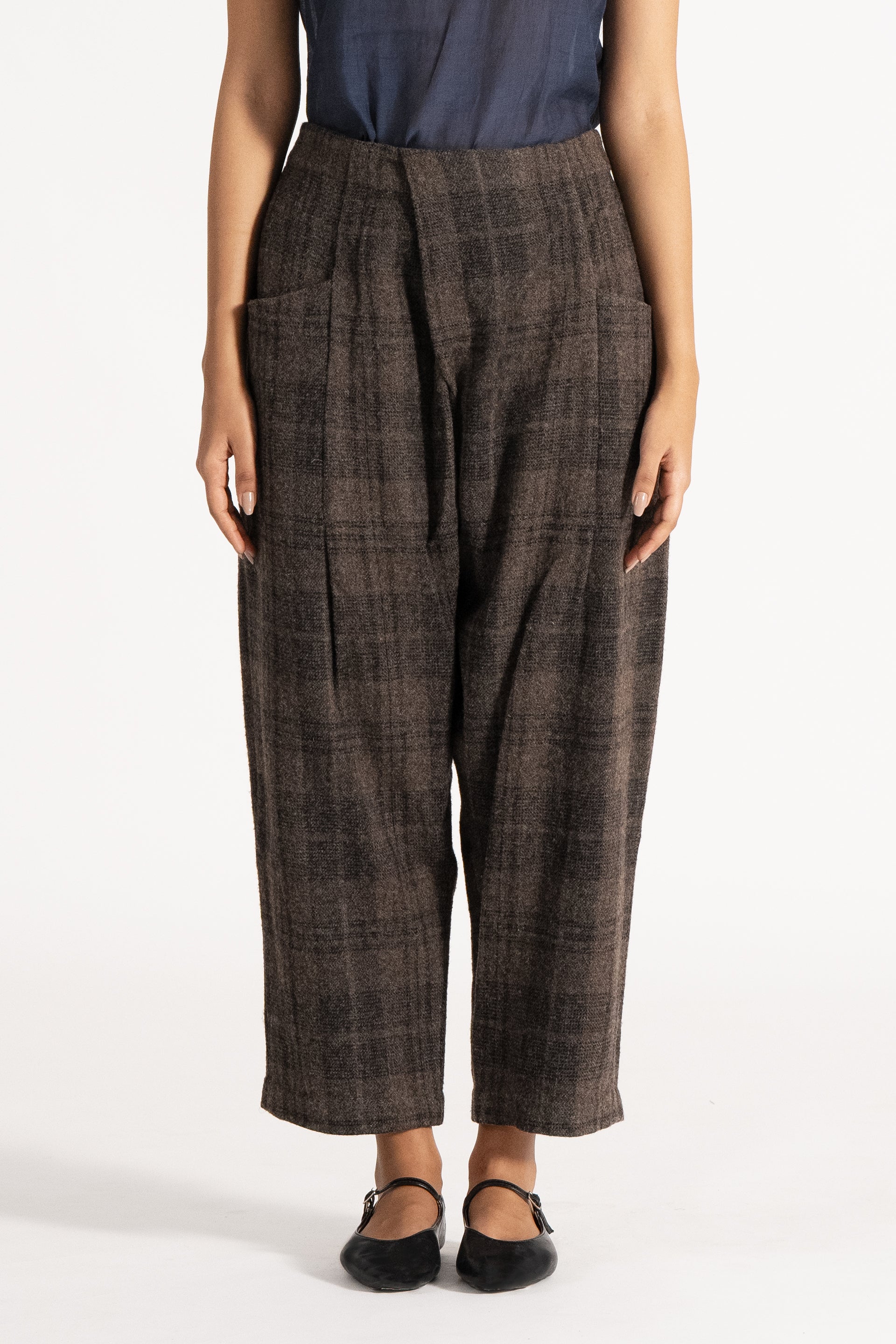 Baggy Fit Trouser In Self Checkered 100% Merino Wool
