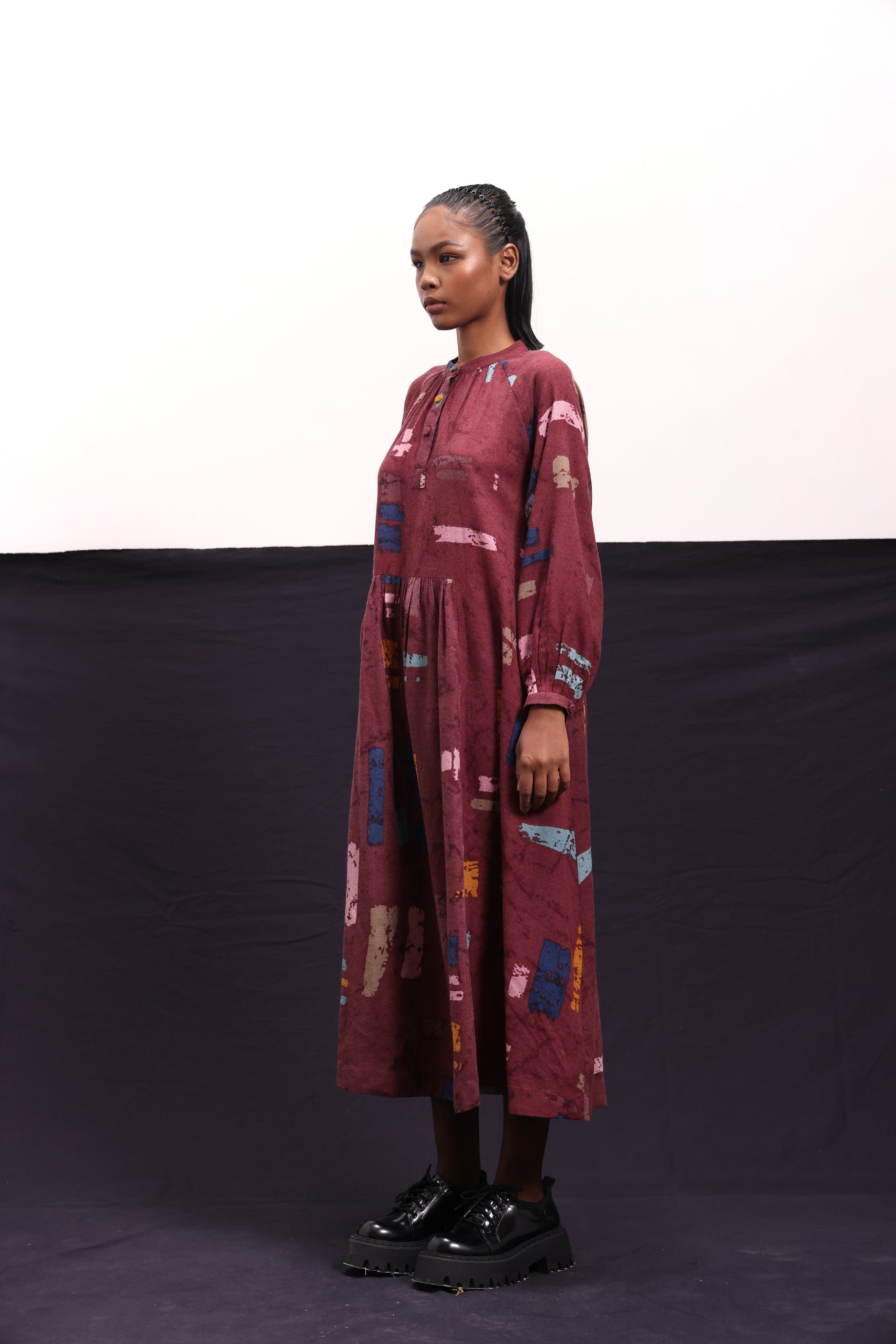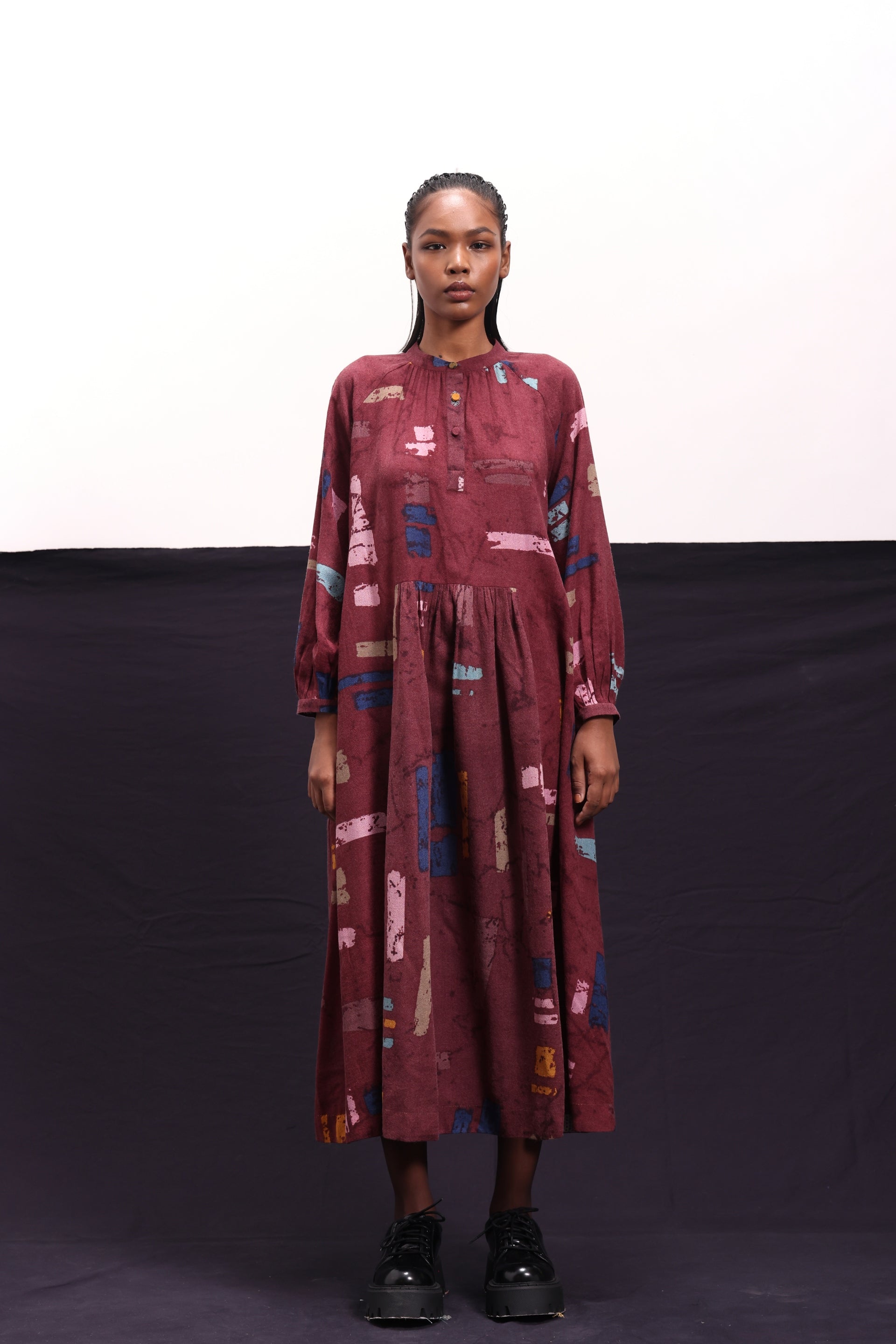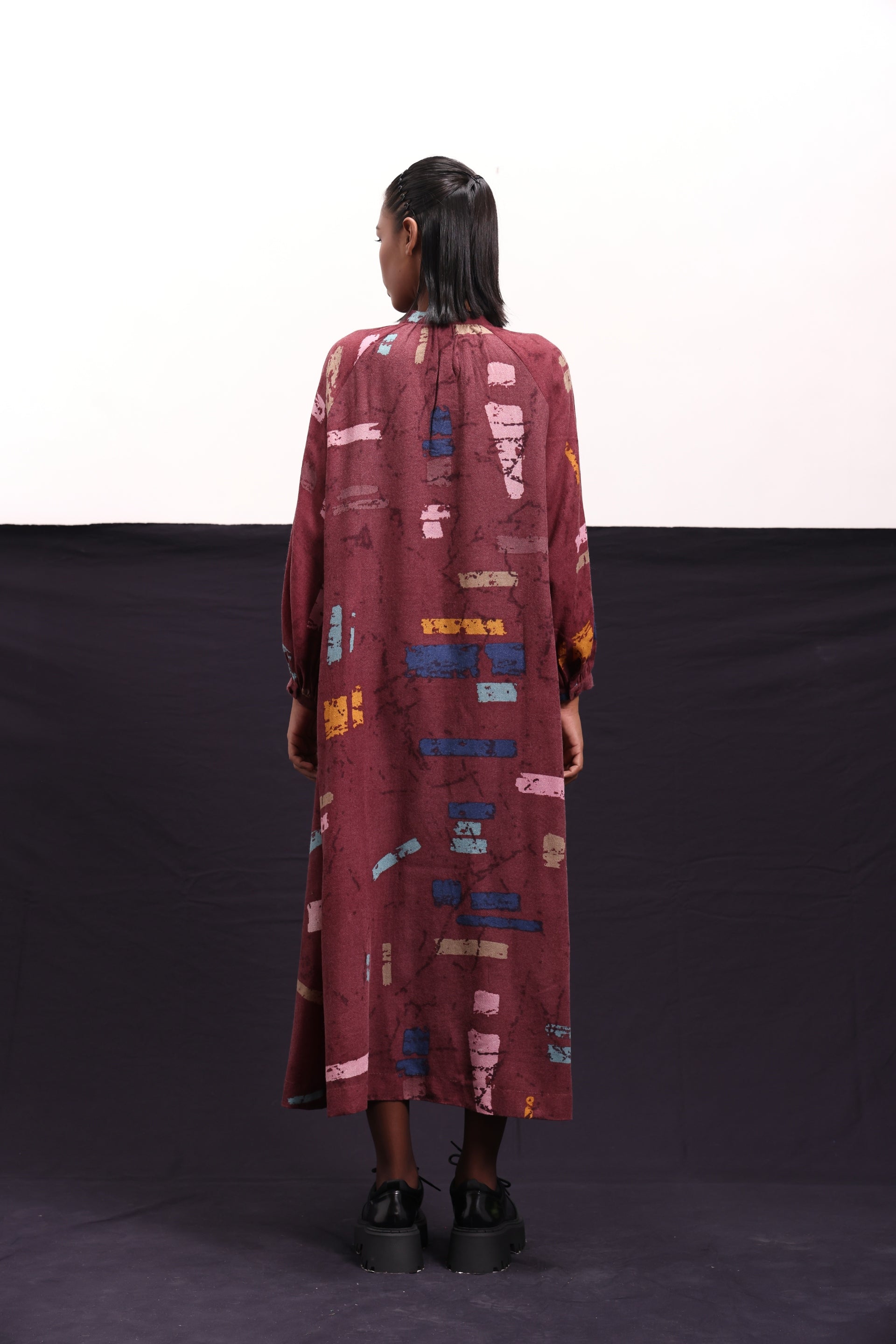 Dress constructed in abstract block print