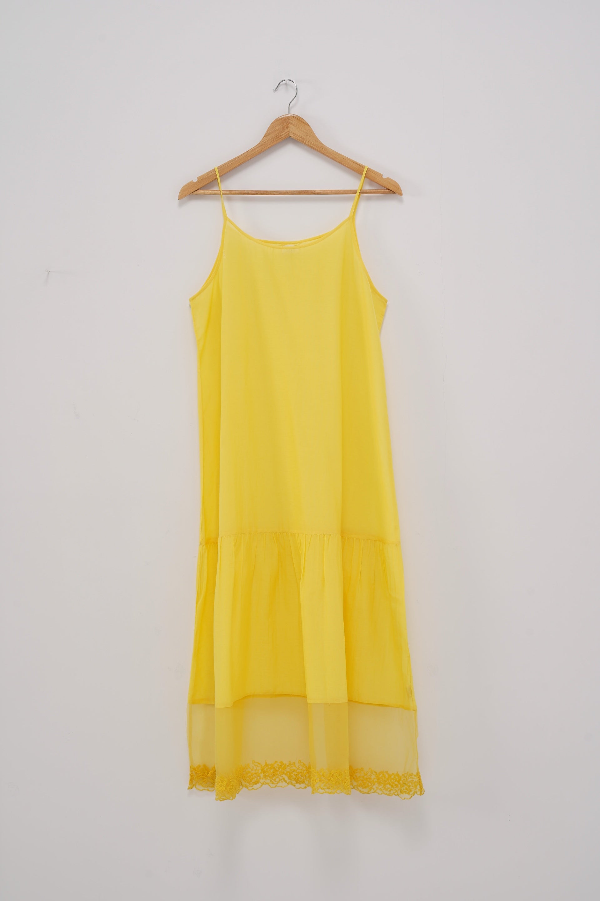 Yellow cotton silk tiered lining with an attached floral cross stitch embroidered organza panel detail