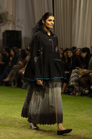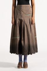 Placement-embroidered top with contrasting details, paired with an ombré skirt finished with delicate scalloped edges.