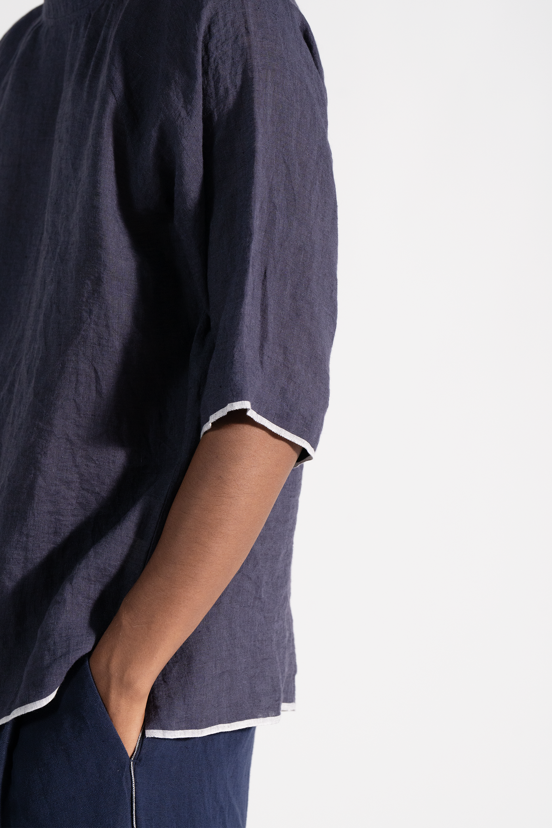Crew neck t-shirt constructed in 100%linen fabric with border detail