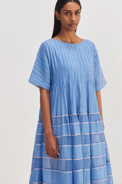 Panelled maxi dress with roushing detail and contrast pipings. Comes with a seperate printed lining.