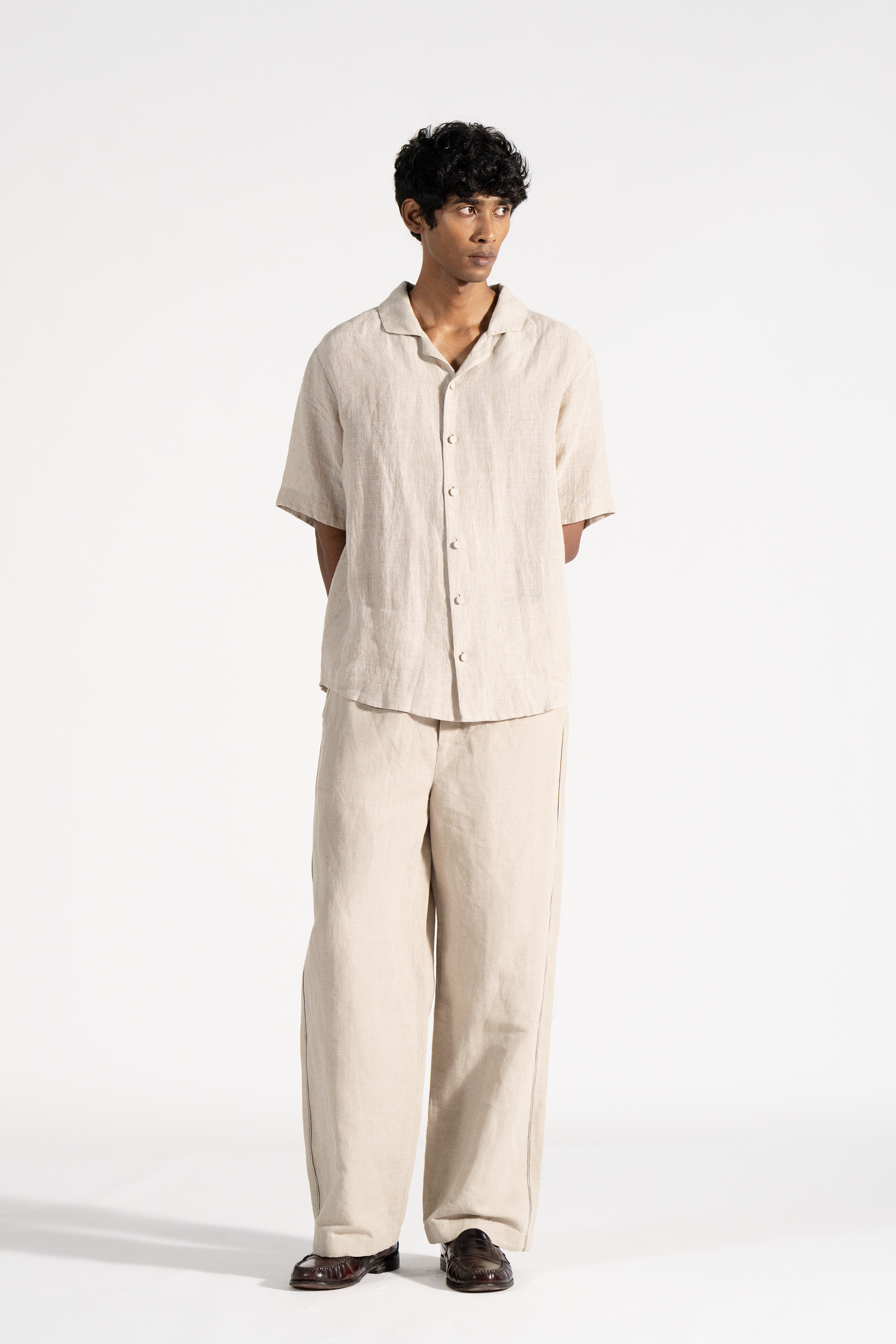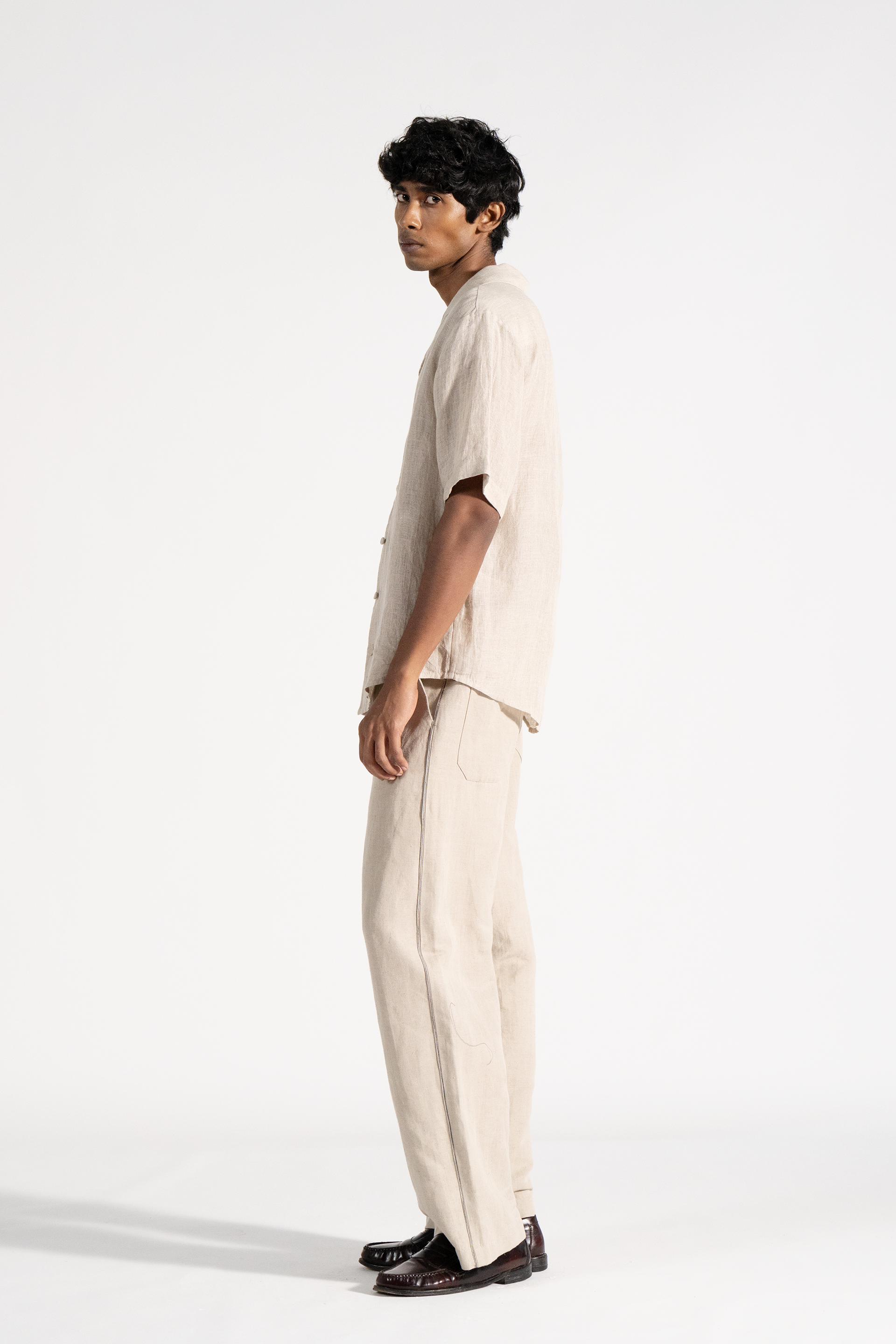 Notch collar shirt with short sleeve in khadi.