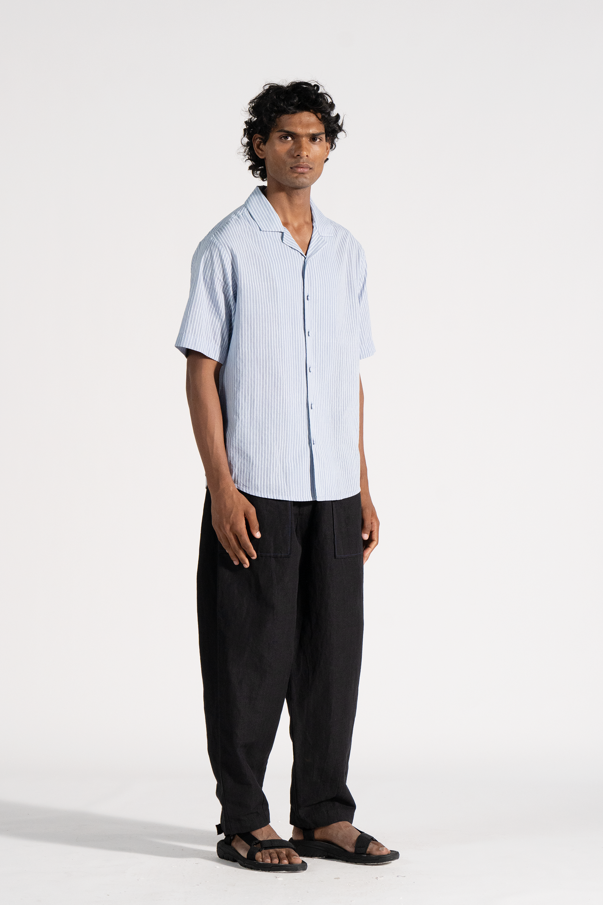 Notch collar shirt short sleeved hanblock printed shirt in khadi.