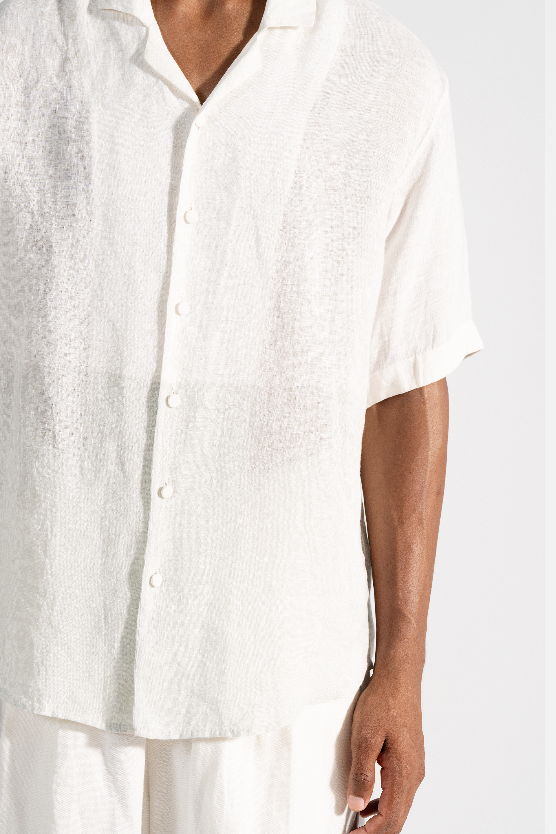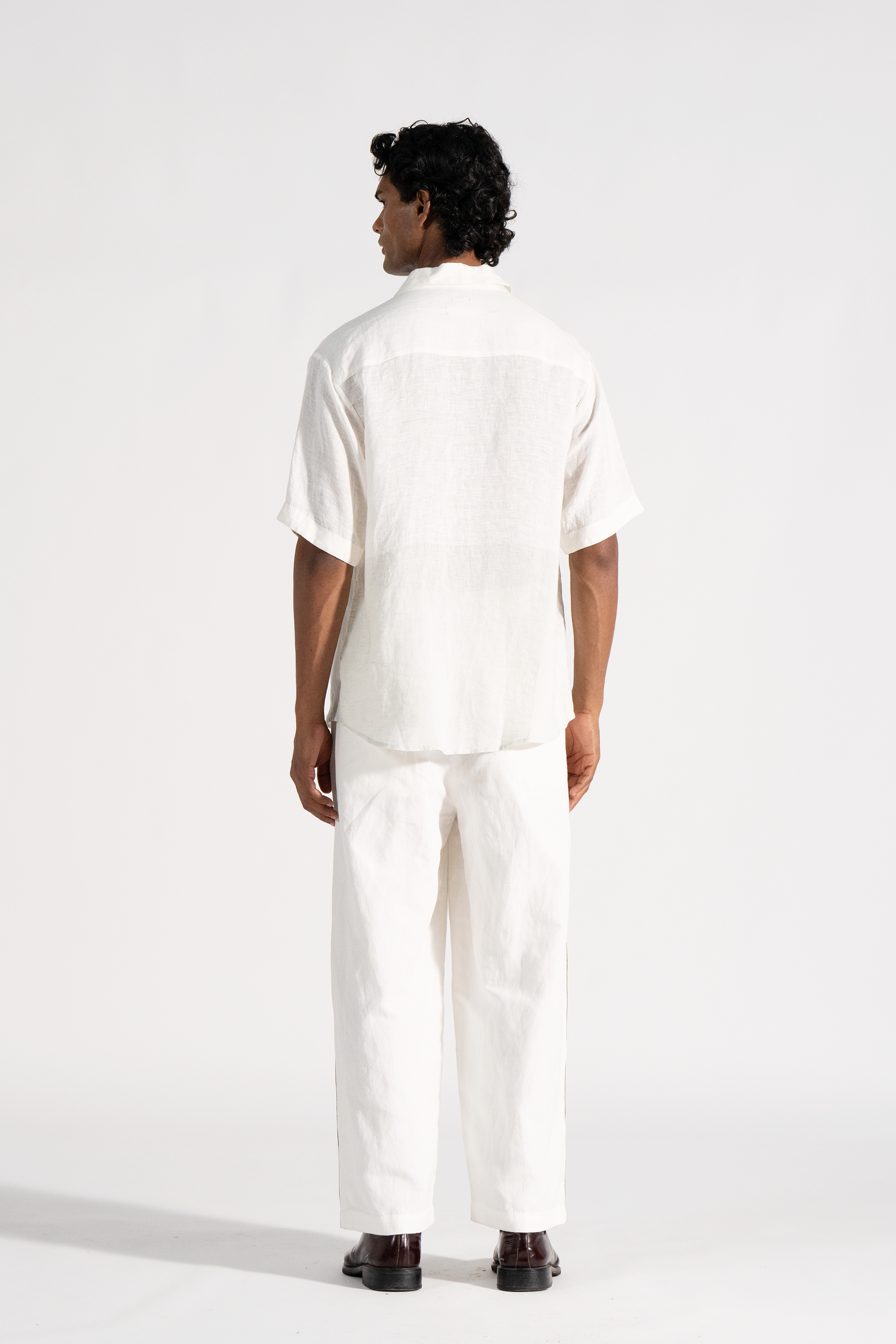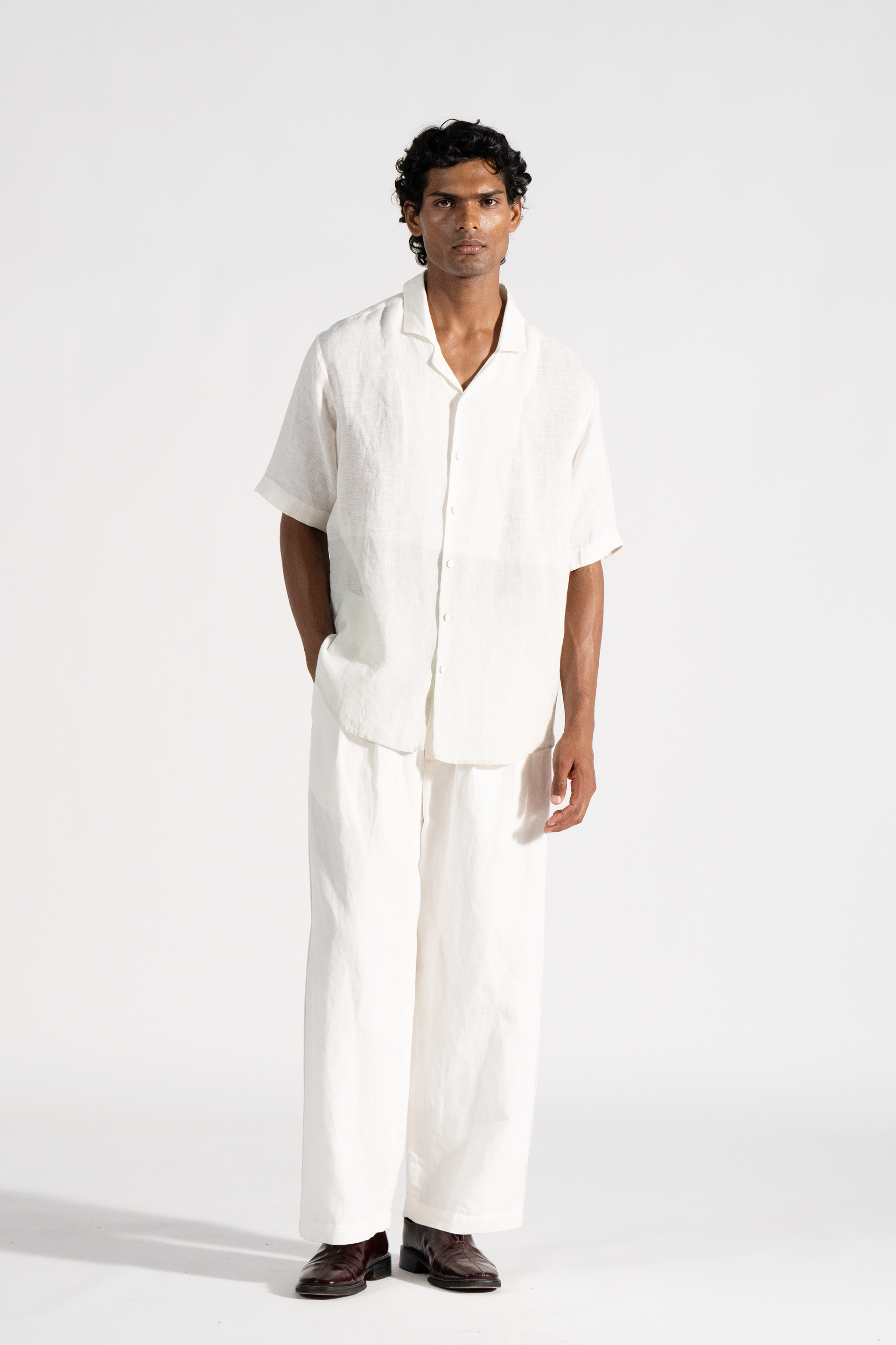 Half sleeve, notch collar handwoven linen shirt in dual tone